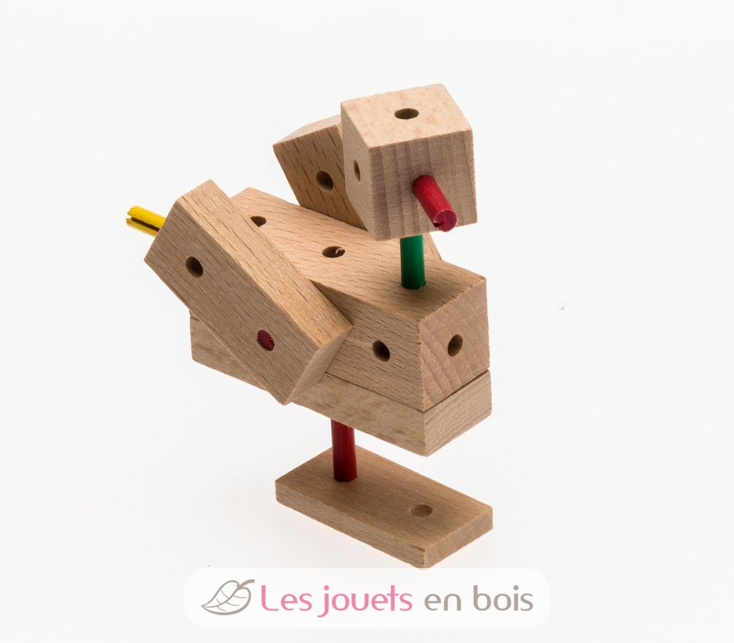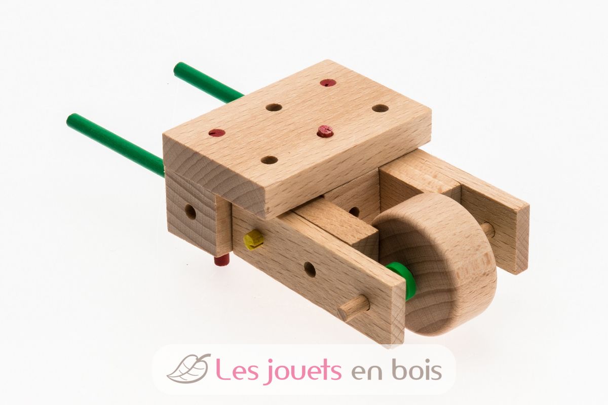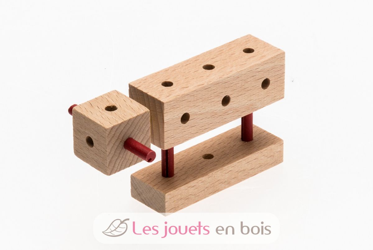 Dieses Bauset für Kinder ab 5 Jahren wird mit einem Hammer geliefert, der für kleine Kinderhände geeignet ist, um ihre Konstruktionen bis ins Unendliche zu montieren und zu demontieren. Ausführliche Anweisungen ermöglichen es ihnen, die vorgeschlagenen Modelle zu bauen.