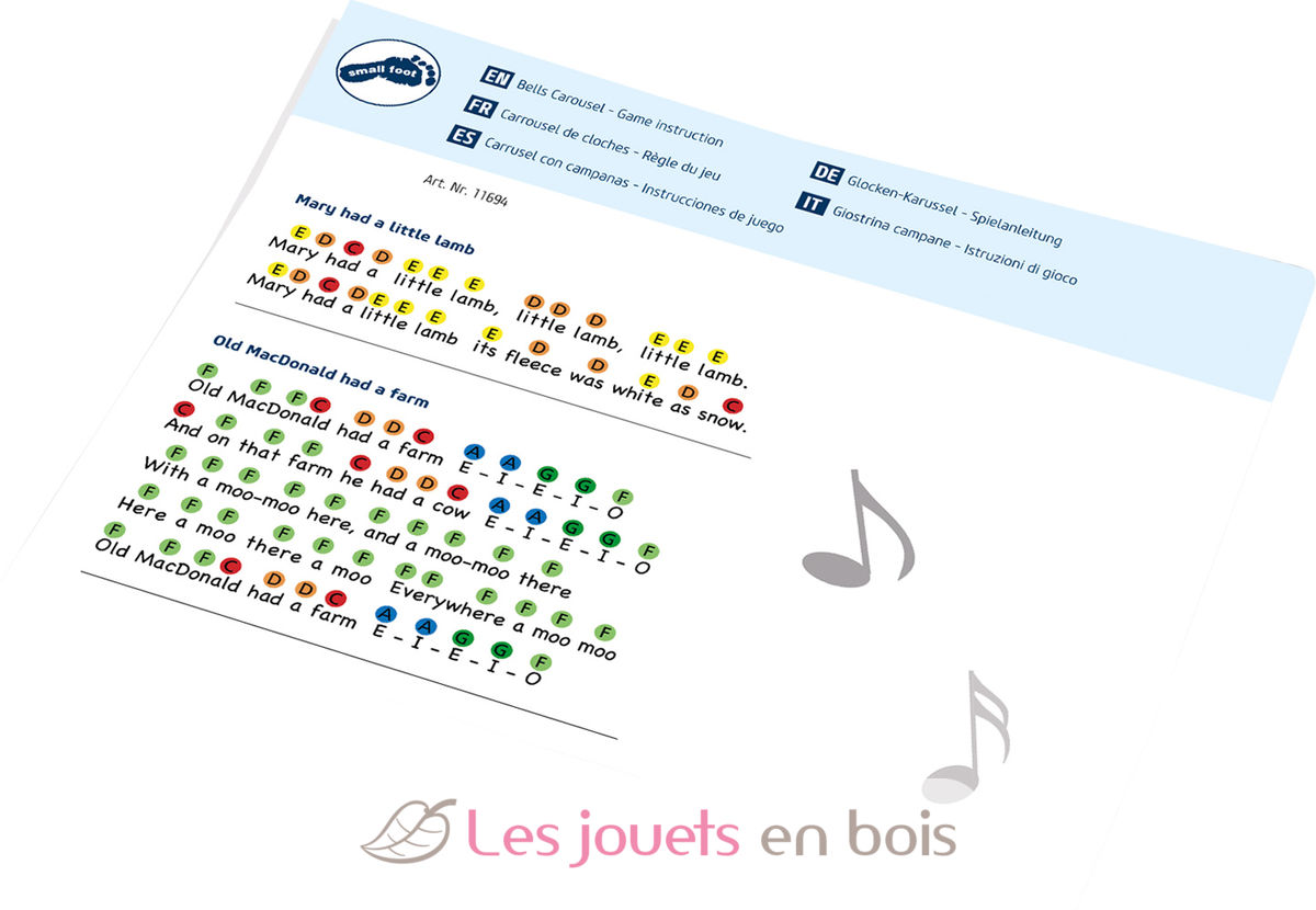 Das beiliegende Notenblatt leitet kleine Musiker und ist dank Farbkodierung schon für Anfänger und kleine Kinder geeignet.