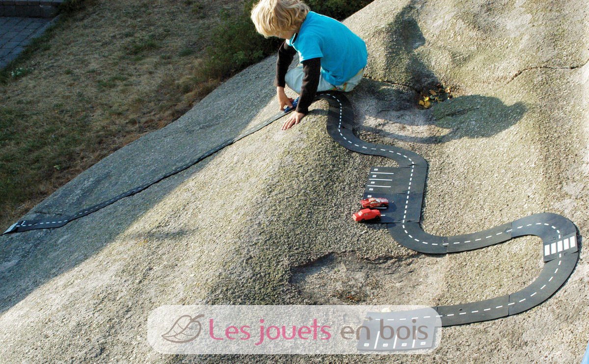 Entdecken Sie die flexible Rennstrecke für Autos der Marke waytoplay. Ein flexibler Gummikreislauf made in Netherlands. Die biegsame Straße aus Gummi erlaubt das Spielen sowohl im Innen- als auch im Außenbereich, da sie auf nahezu jedem Untergrund verlegt werden kann. Diese flexible Straße lässt sich zudem durch einfaches Abwischen unkompliziert reinigen.