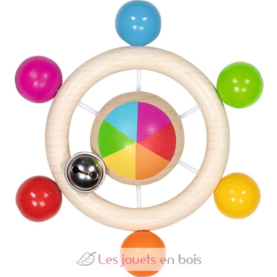 Greifling Perlenkreisel Regenbogen, eine in Deutschland hergestellte Holzrassel von Goki. Referenz 65366.