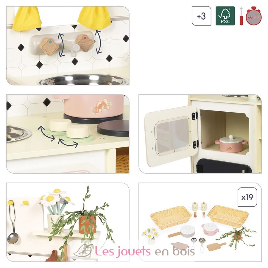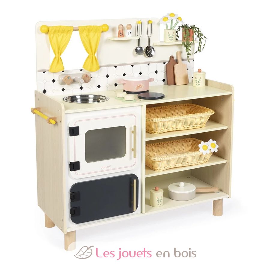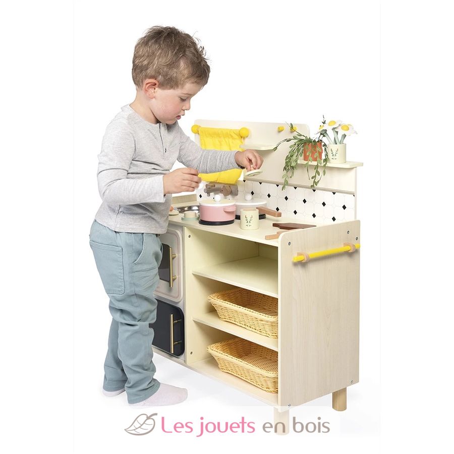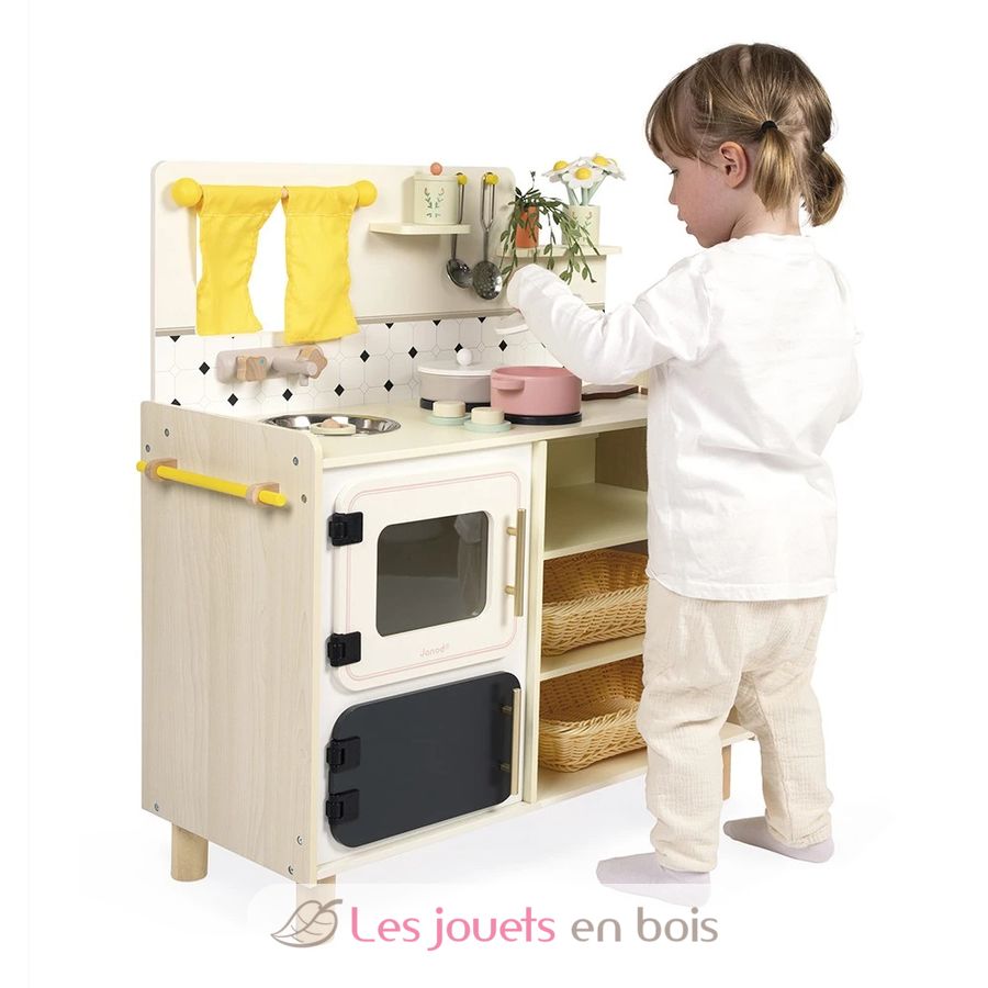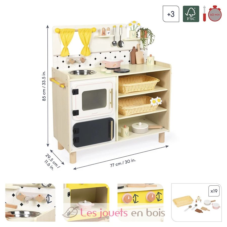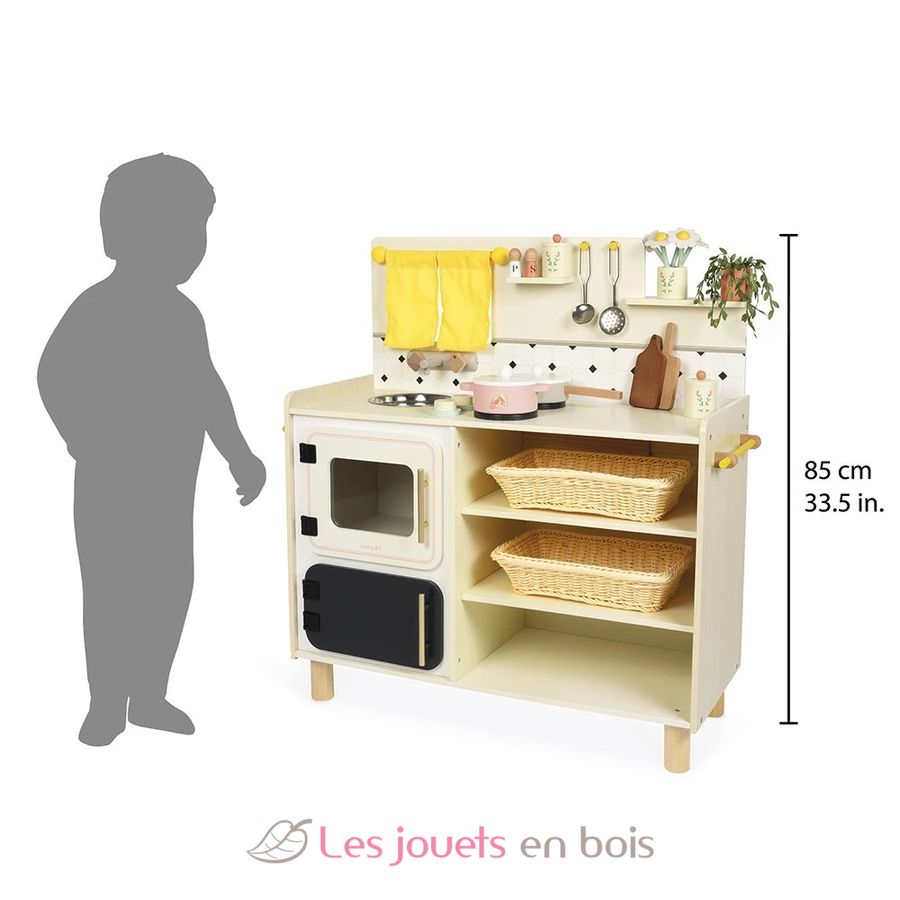Mit ihrer großen Holzküche denken sich Kinder ab 3 Jahren am Herd köstliche Rezepte aus und eifern den Großen nach. Ausgestattet wie eine echte und mit 16 Zubehörteilen ist diese Spielzeugküche perfekt, um Dinette zu spielen und sich allerlei Geschichten und kleine Gerichte auszudenken!