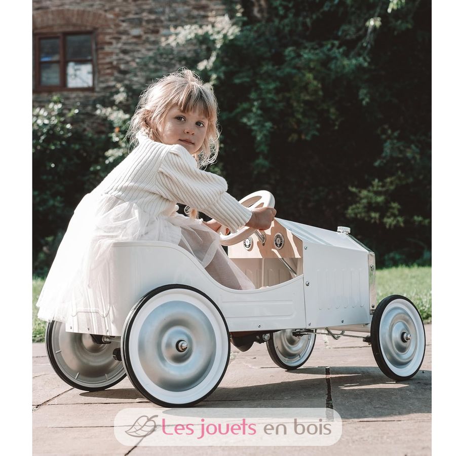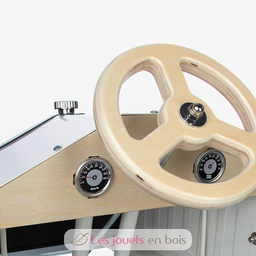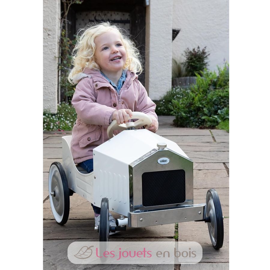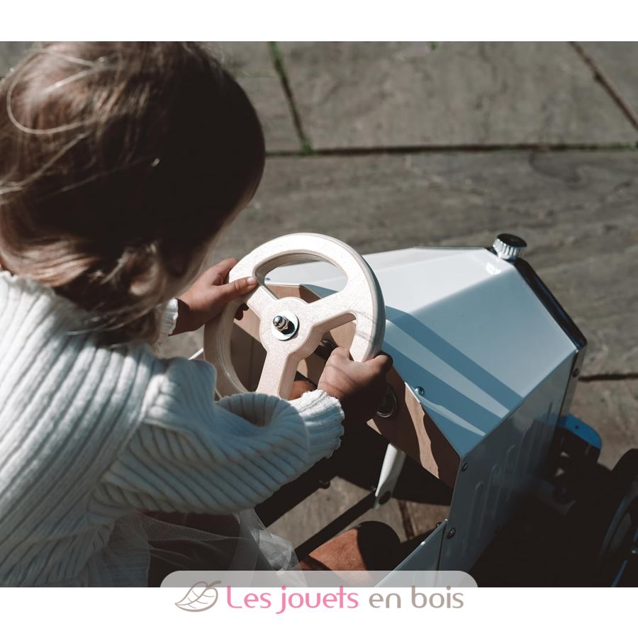 Hochwertiges nostalgisches Tretauto aus Metall und Holz zur förderung der Motorik und Befriedigung des Bewegungsdrangs der Kinder.