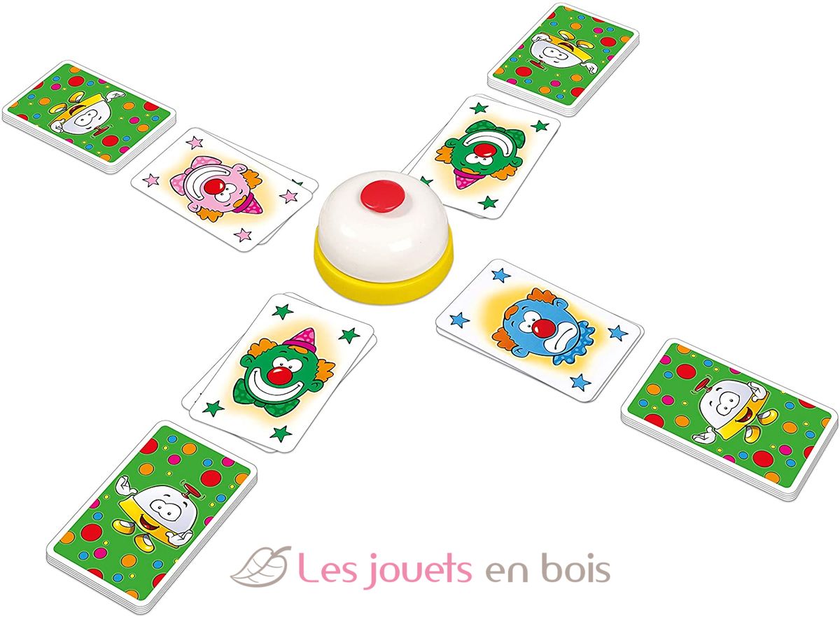 Der Riesenspaß mit der Glocke, jetzt auch für die Allerkleinsten. Wie schon beim furiosen Dauerbestseller Halli Galli geht es auch in der Junior-Ausgabe konzentriert und blitzschnell zur Sache. Sobald zwei gleichfarbige Clowns zu sehen sind, gibt es kein Halten mehr und alle Hände rasen auf die Glocke zu. Aber nicht immer ist es so, wie es scheint. Manchmal sind die Clowns ganz traurig, und dann müssen die Finger still bleiben.