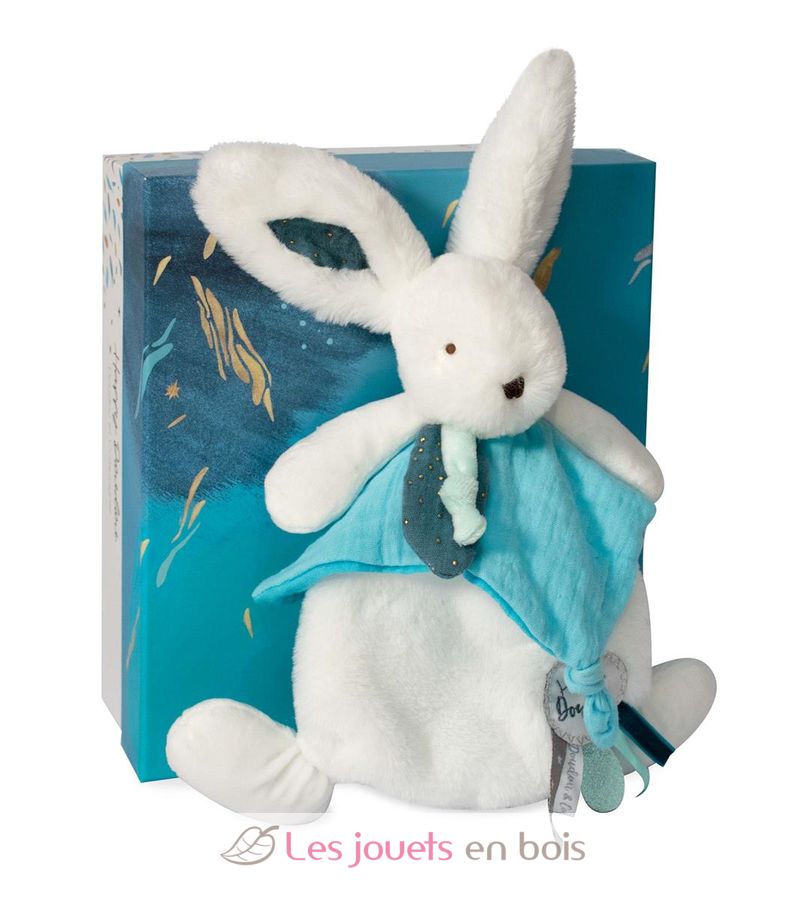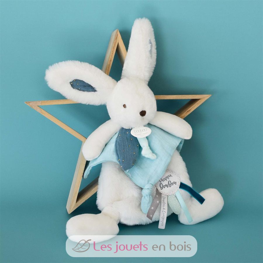 Happy Pop Kaninchen Pompon Blau (25 cm), Schmusetuch von Doudou et Compagnie.
