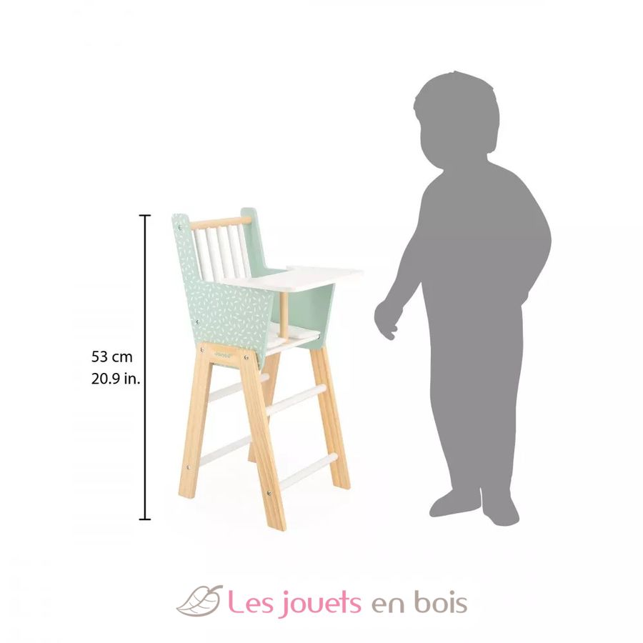 Dieser hübsche Hochstuhl ist perfekt, um die Lieblingspuppe zu füttern und zu versorgen. Dazu ein hübsches Kissen für mehr Komfort. Geeignet für Puppen von einer Größe bis zu 42 cm (Puppe nicht inbegriffen, Zubehör nicht im Lieferumfang enthalten).