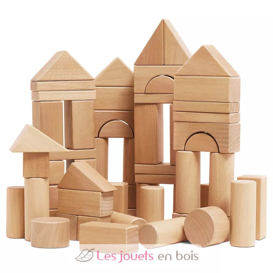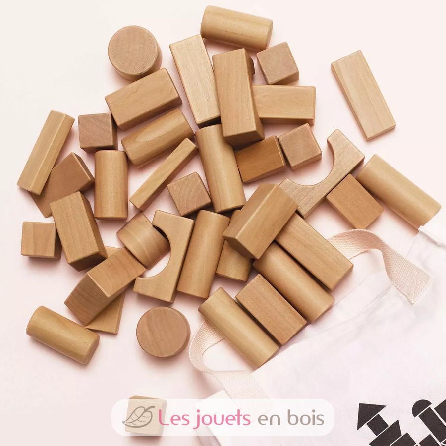Dieses 60-teilige Bauklotzset aus Massivholz besteht aus natürlichem FSC-zertifiziertem Holz und verfügt über glatte Kanten.