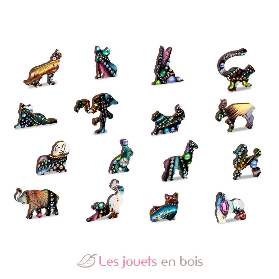 Erleben Sie die Eleganz eines Holzpuzzles Tier, das Form und Funktion nahtlos vereint. Beim Zusammensetzen dieses exquisiten Stücks entfaltet sich die Silhouette einer Katze, geschmückt mit funkelnden Edelsteinen, die Ihre Sinne fesseln. Jedes Puzzlestück, sorgfältig geschnitzt, hat seine eigene einzigartige Form. Neben der geschmückten Schönheit der Katze finden Sie ausgefallene, thematische Schnitte. Von Tieren bis zu Monumenten – jedes Stück spiegelt das übergeordnete Thema wider, was den Zusammenbau noch spannender macht.