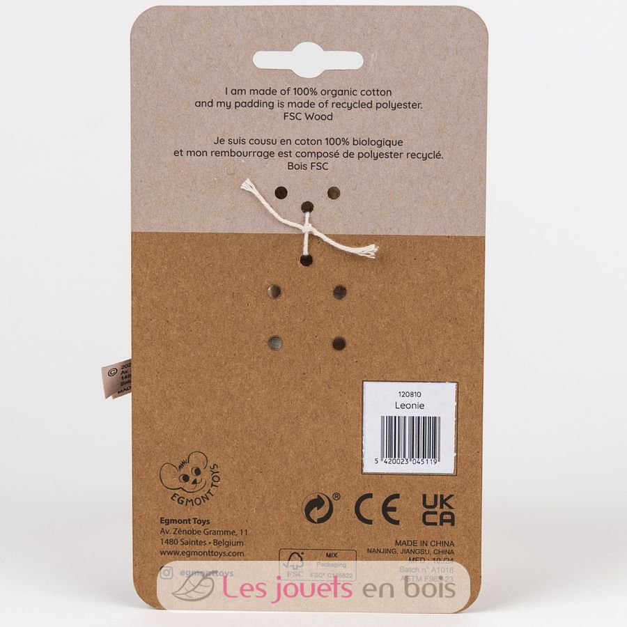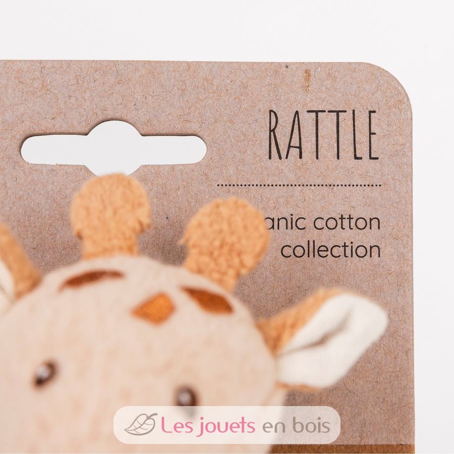 Leonie die Giraffe hängt an einem Holzring und besteht aus Bio-Baumwolle und recyceltem Polyester.