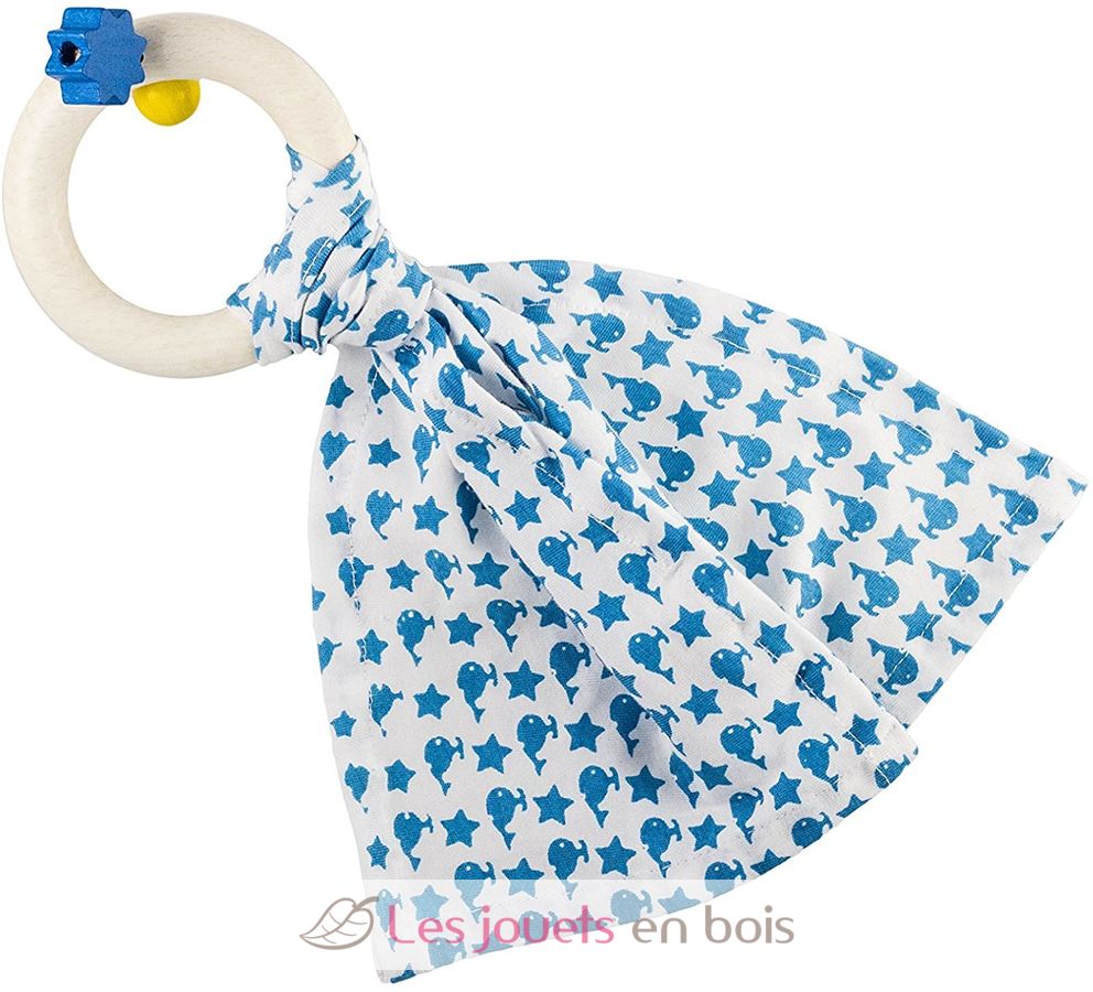 Holzrassel mit Kuscheltuch Bib0+ blau der Marke Little Big Things, ref 120-000-605.