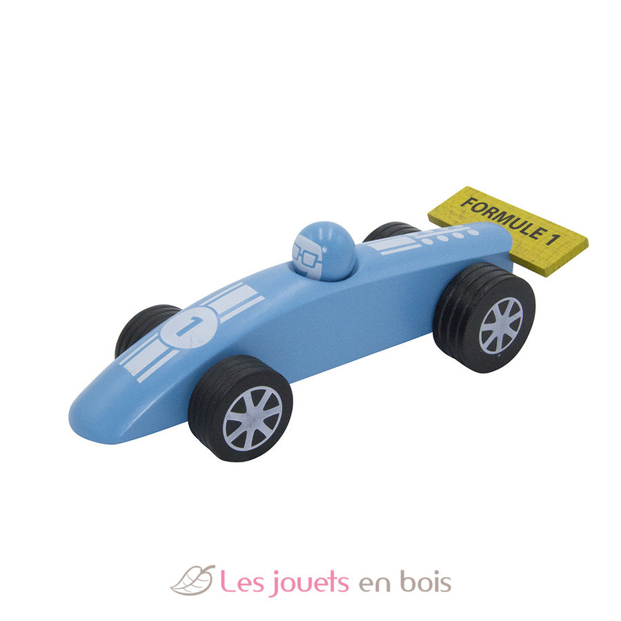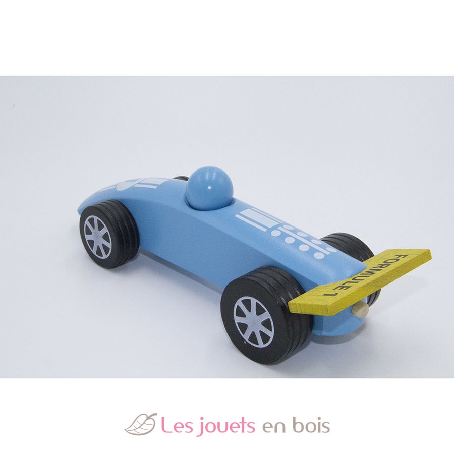 Rennwagen F1 - Blau (Klein) aus Buchenholz. Alle FOULON Spielzeuge werden ausschließlich in Frankreich hergestellt. Dimensions 145 x 60 x 45mm Holzrennwagen F1 - Blue Small aus Holz der Marke FOULON, ref 107006B.