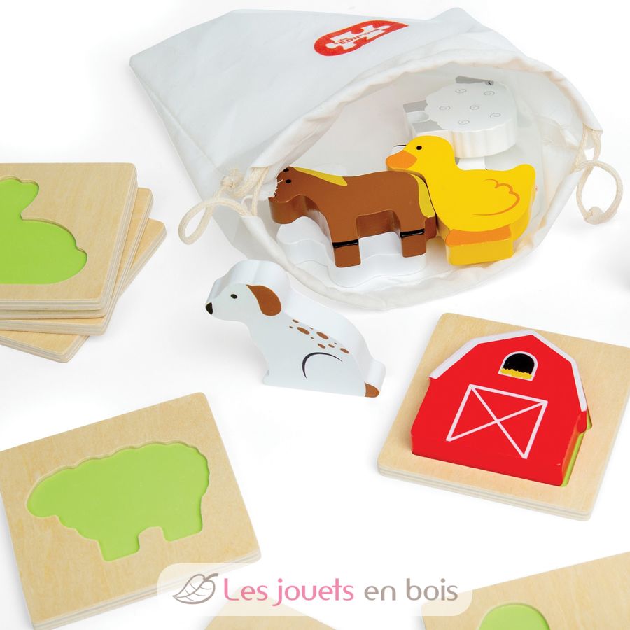 Holzspiel Fühlen und Finden Bauernhof, ein Fühllotto von Bigjigs Toys.