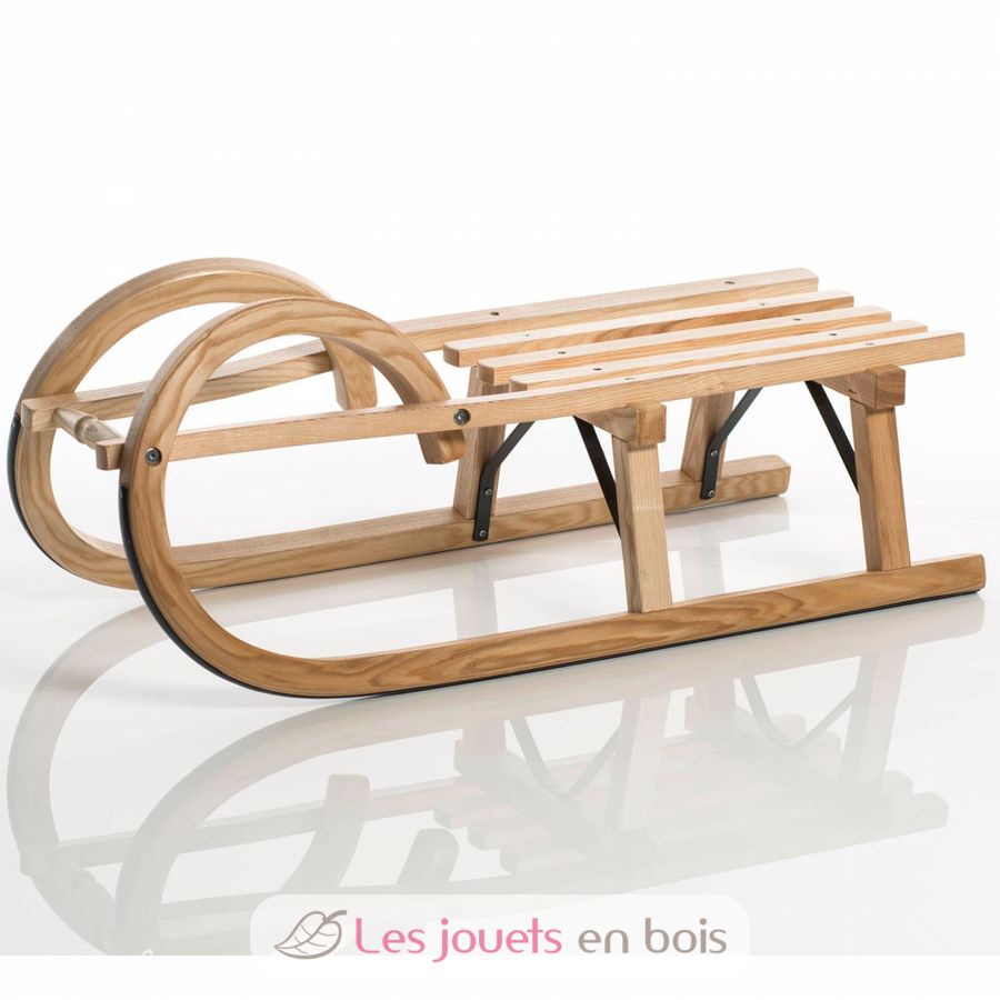 rodel aus dampfgebogenem eschenholz mit durchgehenden, geschwungenen außenholmen sowie gedrechselter schnurrolle mit verschraubtem sitzlatten und verschraubter bockaussteifung zweifach lackiert längen 85 cm, mit lattensitz tüv/gs geprüft