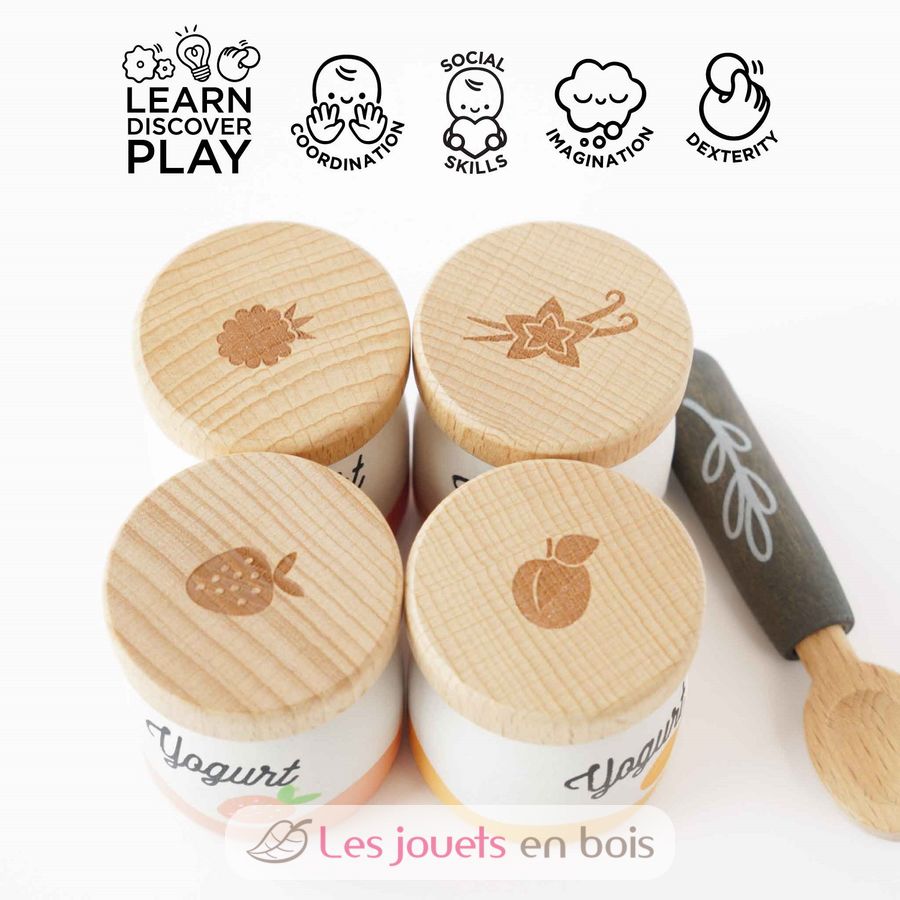 Dieses Set mit Holzlöffel erlaubt Ihrem kleinen Koch, nach Herzenslust imaginäre Joghurts zuzubereiten.