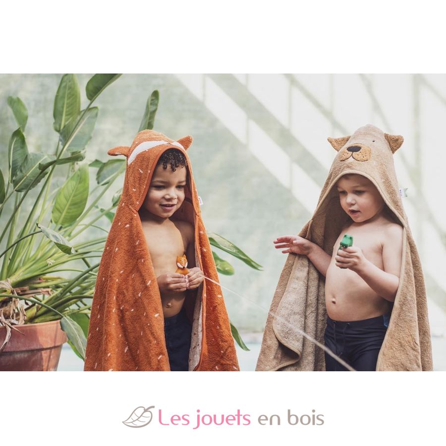 Dieses Badetuch aus wunderbar weichem Frottee aus 100 % Bio-Baumwolle bietet Ihrem Kind den nötigen Komfort.