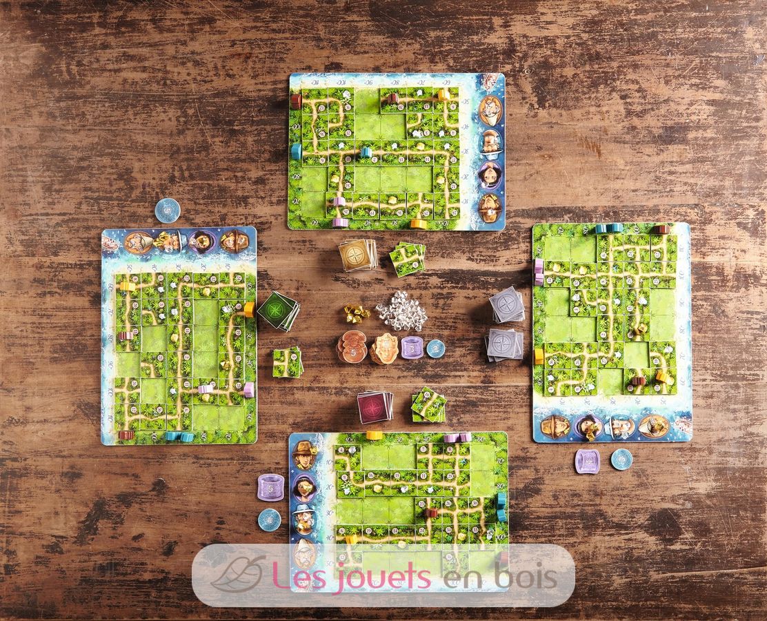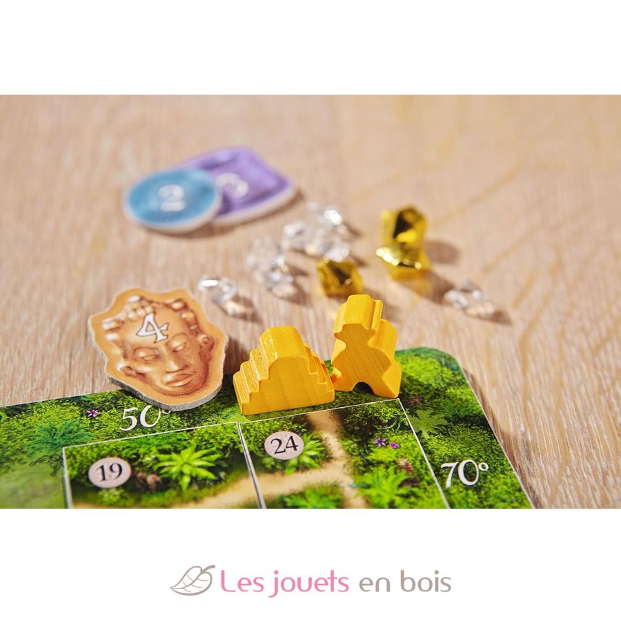 Familienspiel: Nach einer langen Schiffsreise haben die Schatzjäger die Insel Karuba erreicht und können sich auf die Jagd nach den verborgenen Schätzen machen. Wer führt sein Expeditionsteam möglichst clever über die Dschungelpfade, achet auf die Mitspieler und hält dieAugen nach Gold und Kristallen am Wegrand offen? Doch am wichtigsten ist es, rechtzeitig loszulaufen: Denn die Ersten sichern sich die wertvollsten Tempel-Schätze. Ein fesselndes Legeabenteuer!!!