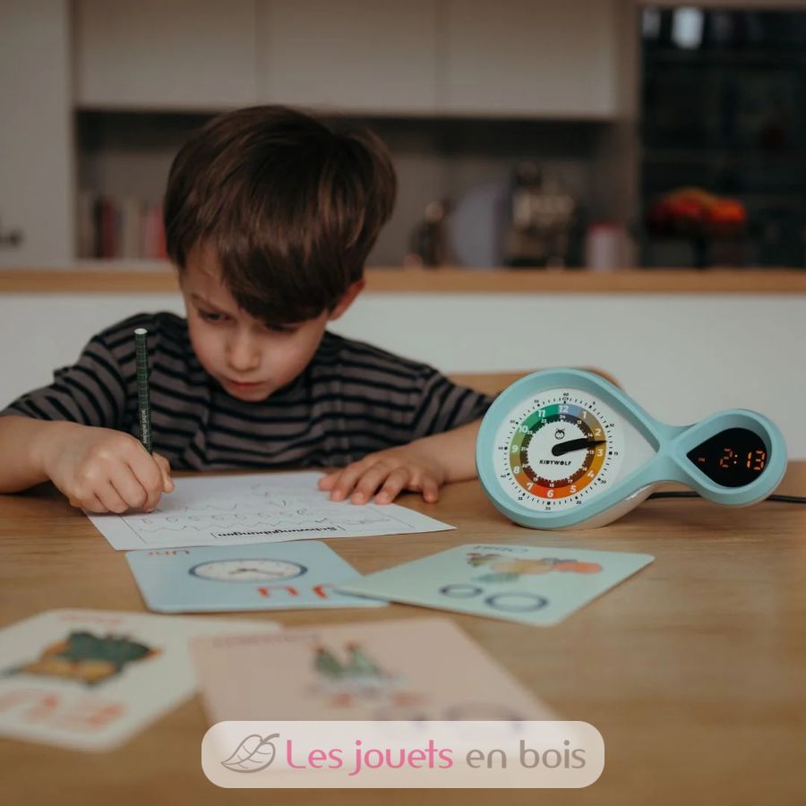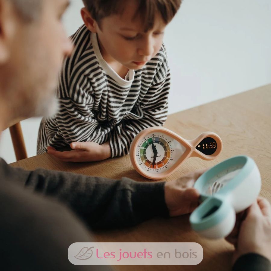 Der Kidyalarm ist mehr als nur ein Wecker. Es wurde entwickelt, um Ihrem Kind zu helfen, die Uhrzeit zunächst analog und dann digital abzulesen. So kann sich Ihr Kind mit einem Wecker weiterentwickeln, der es ihm ermöglicht, nach und nach zu lernen, die Zeit zu visualisieren. Zunächst wird Ihr Kind das Konzept der Zeit anhand von Farben entdecken, dann wird es sich nach und nach mit Zahlen und Zahlen vertraut machen und so die Konzepte der Minuten, des Vormittags und des Nachmittags verstehen.