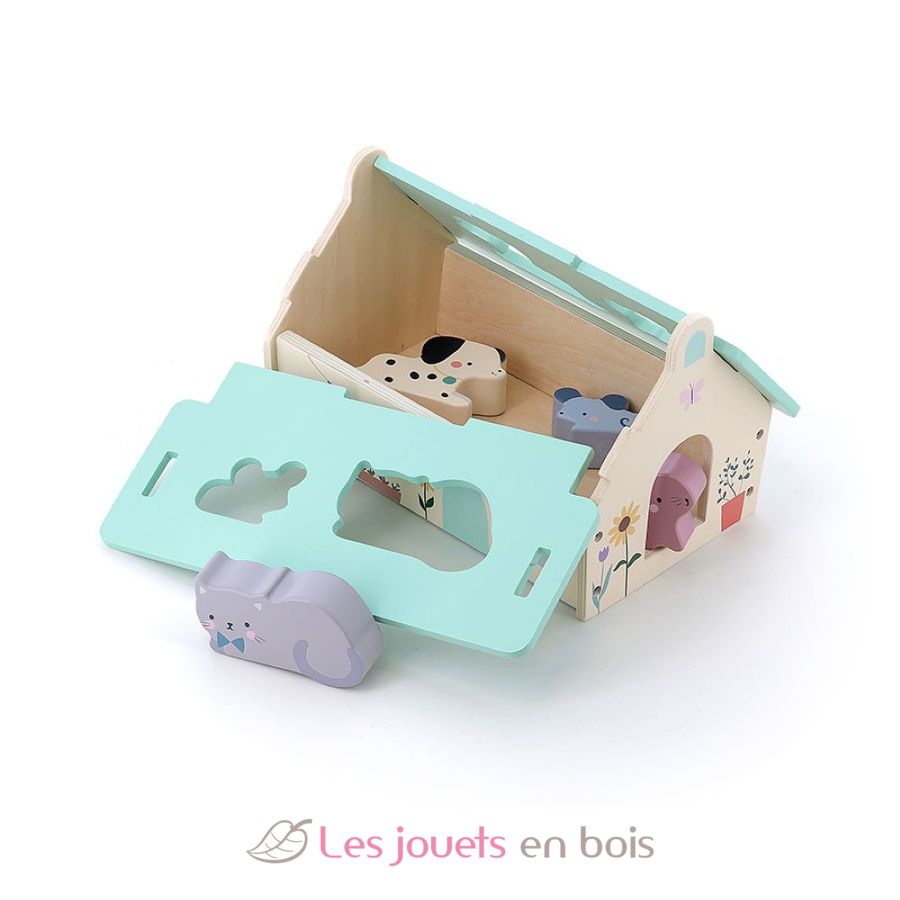 Die Formenbox ist ein Lernspielzeug, das Ihrem Kind hilft, Logik und Geschicklichkeit zu entwickeln. Das Dach dieses Tierhauses ist abnehmbar, sodass die Teile im Inneren ganz einfach entnommen werden können.