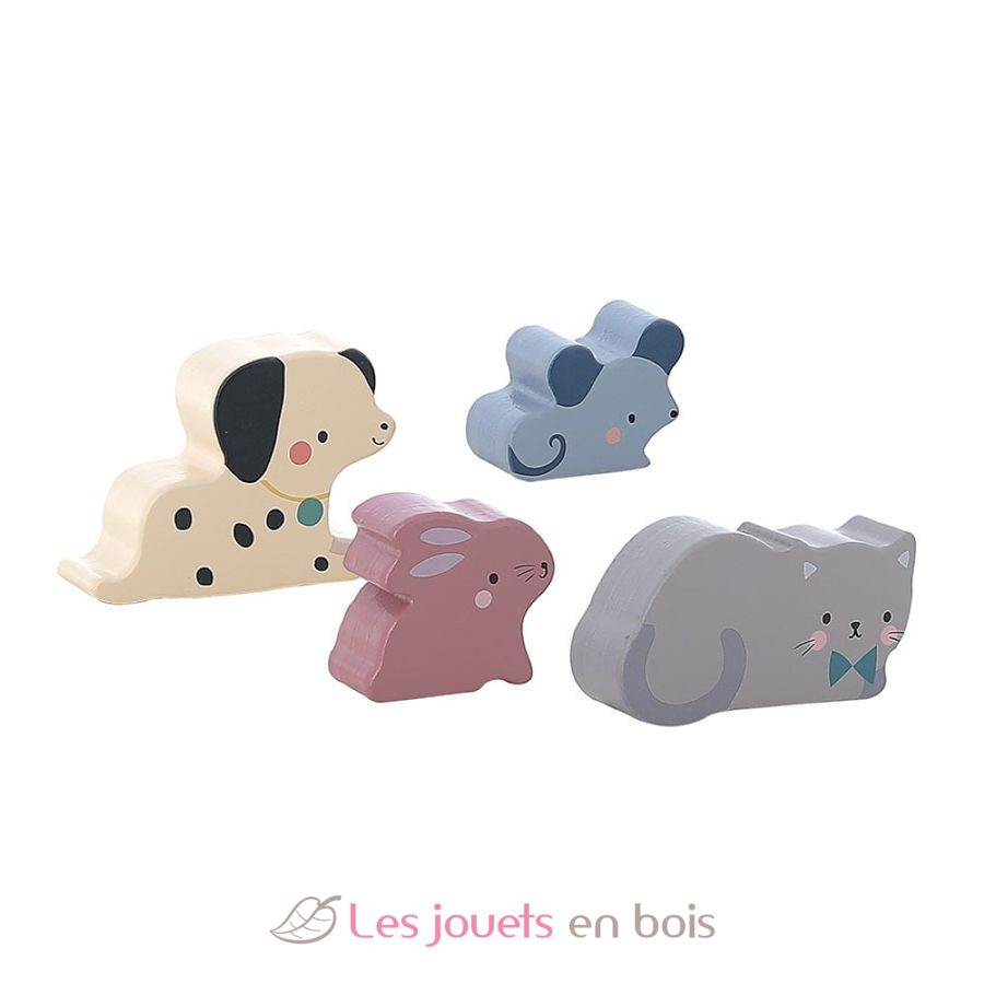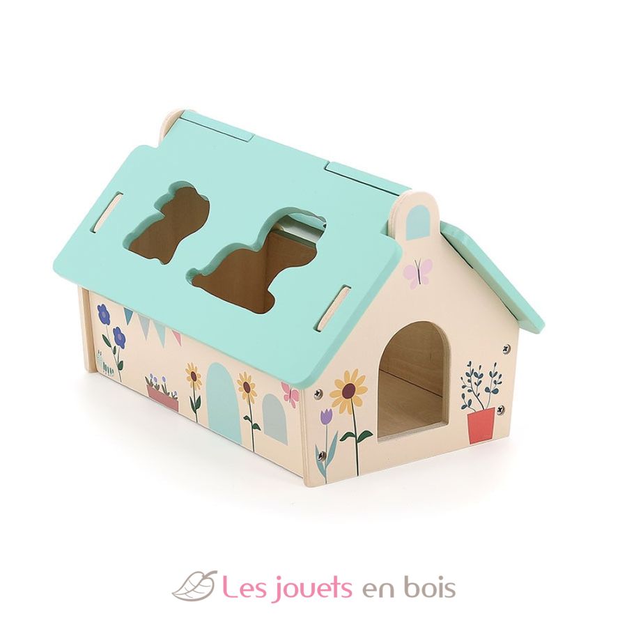 Wer versteckt sich in diesem hübschen Holzhaus? Ein kleiner Hund? Ja, aber nicht nur das! Ihn begleiten eine Maus, eine Katze und ein Kaninchen.