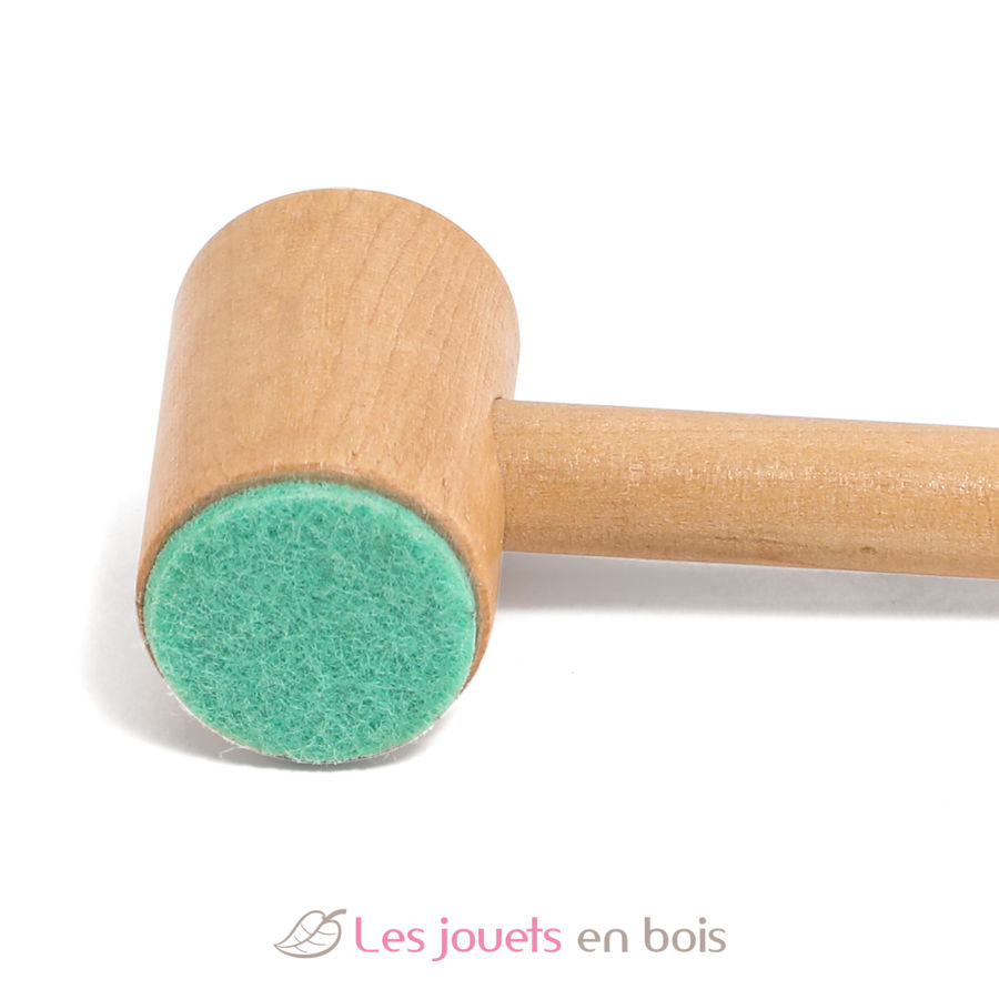 Klopf, Klopf, kleine Schildkröte – wo steckt denn dein Bein? Das Klopfspiel besteht aus einer niedlichen Schildkröte, auf deren Rücken bunte Holzstäbe stecken. Klopfen Kinder mit einem Holzhammer geschickt auf die bunten Stäbe, tauchen abwechselnd die Beine, der Kopf und das Schwänzchen aus dem Schildkrötenpanzer auf.