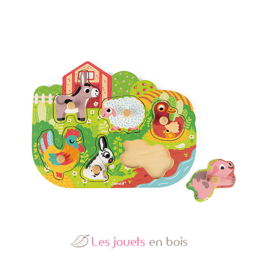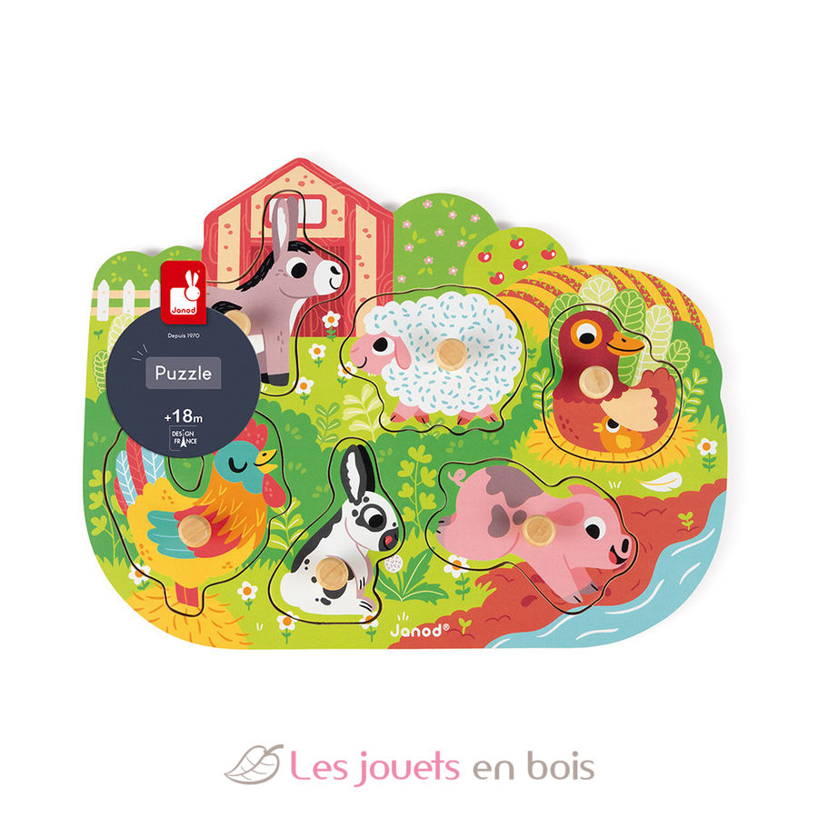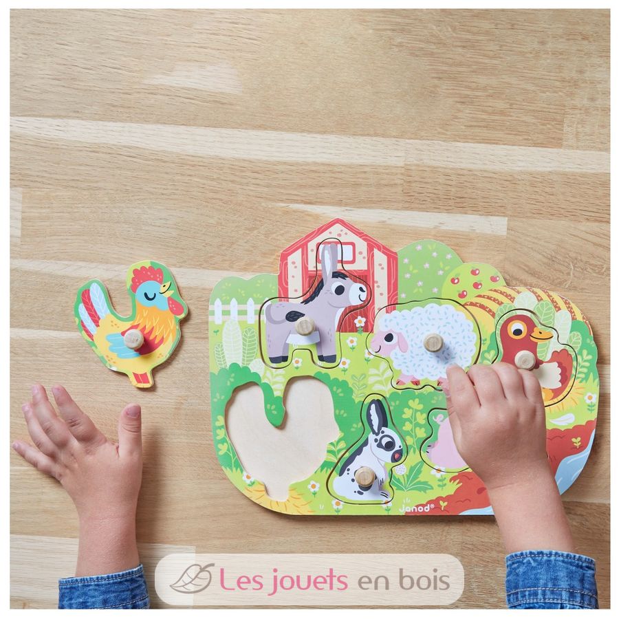 Knopfpuzzle Bauernhof, puzzle aus Holz von Janod. Ref. J07096.
