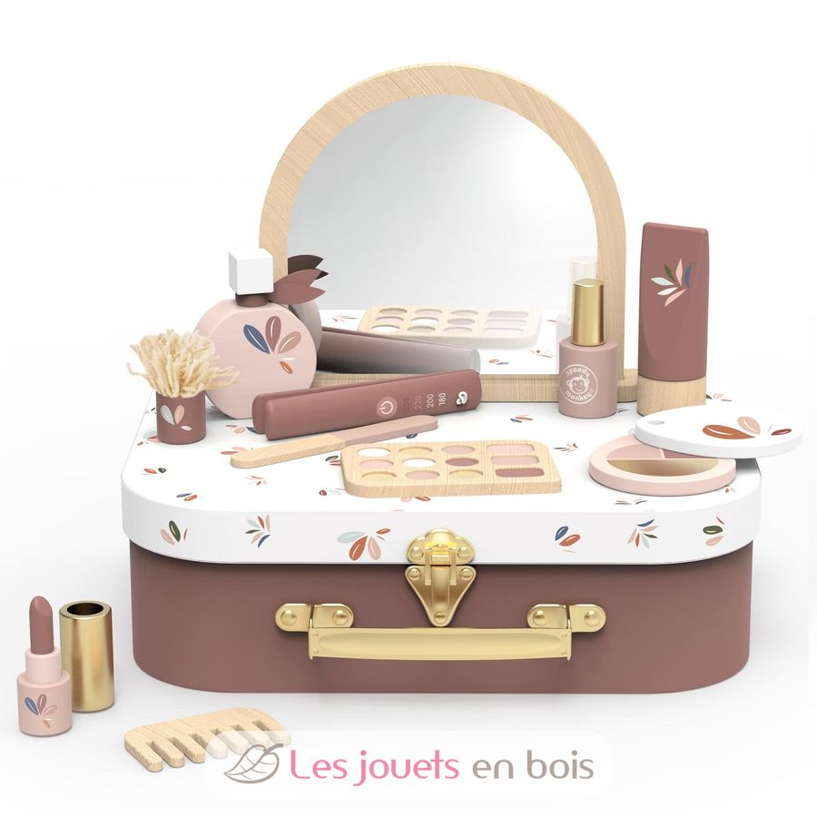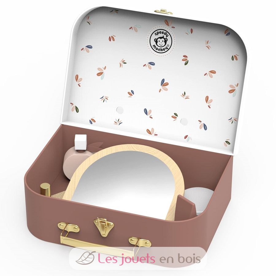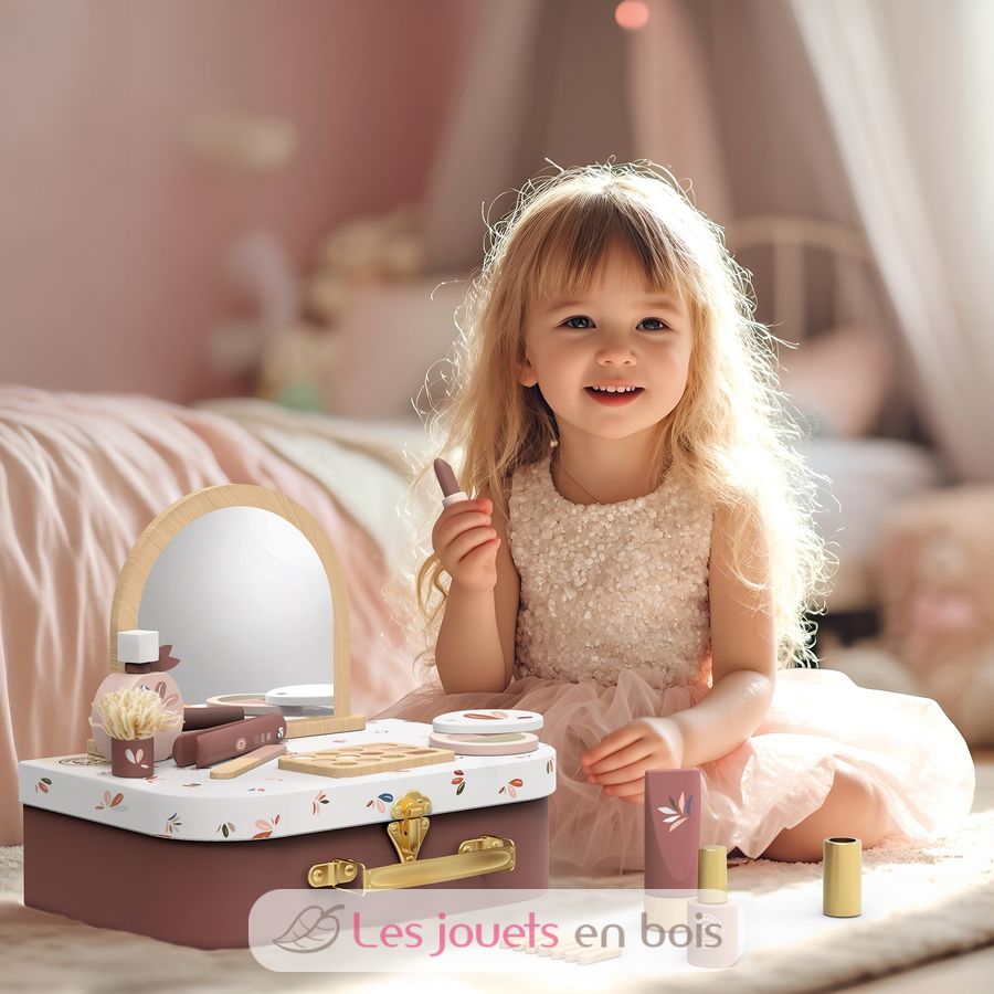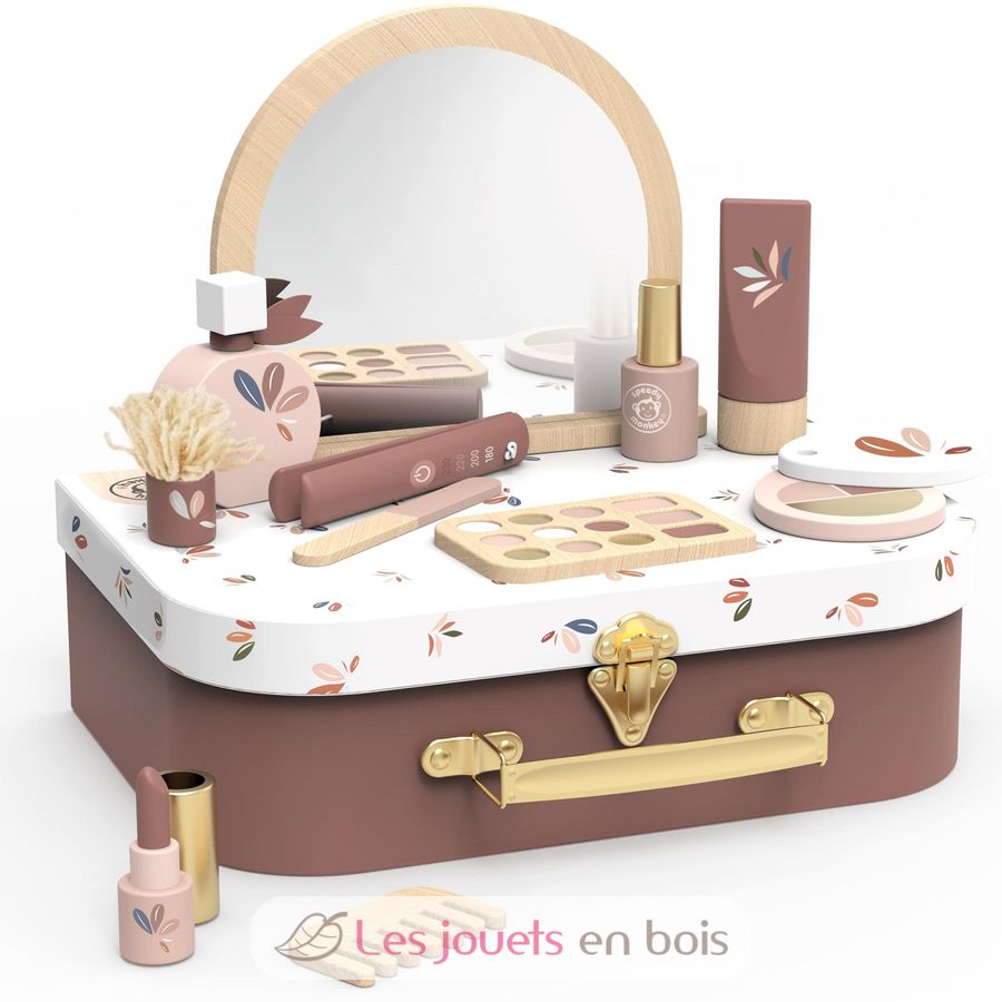 Im Koffer verbirgt sich eine bunte Sammlung von 12 Beauty-Accessoires aus Holz – perfekt, um die Schönheitsroutinen der Erwachsenen auf spielerische, sichere und bildschirmfreie Weise nachzuahmen. Von Schminke bis hin zu Haarstyling-Werkzeugen ist jedes Teil sorgfältig für kleine Kinderhände gestaltet und fördert so die Feinmotorik, das fantasievolle Spielen und die soziale Interaktion.