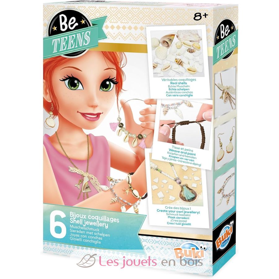 Entdecken Sie das Kreativ-Set Schmuck mit Muscheln von Buki, eine kreative Aktivität für Kinder ab 8 Jahren.