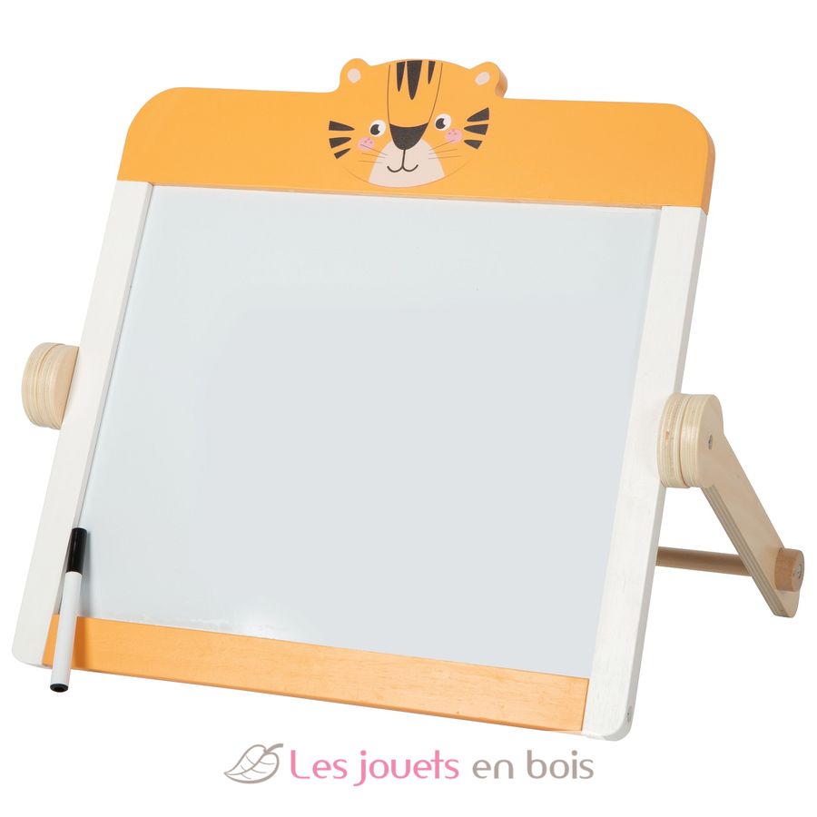 Dank des beweglichen Standrahmens lässt sich die Tafel kinderleicht auf dem Tisch aufstellen und bei Bedarf platzsparend verstauen. Ob im Kinderzimmer, Wohnzimmer oder unterwegs – diese Lerntafel sorgt überall für kreative Beschäftigung.