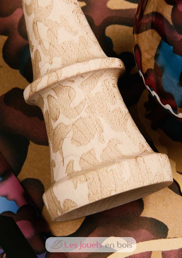 Die Krom Plasticity-Serie hat ein schlichtes Aussehen, sodass Sie die Holzmaserung in der Größe sehen können, während das ausgefallene Design erhalten bleibt. Aus langlebigem Ahornholz geschnitzt und mit der CK-Form versehen, die dem Ken sein einzigartiges, schlankes und elegantes Aussehen verleiht, ist dieses Kendama für einen vielfältigen Spielstil optimiert, wobei der Schwerpunkt darauf liegt, alle verschiedenen Figurenstile und Griffwechsel integrieren zu können.