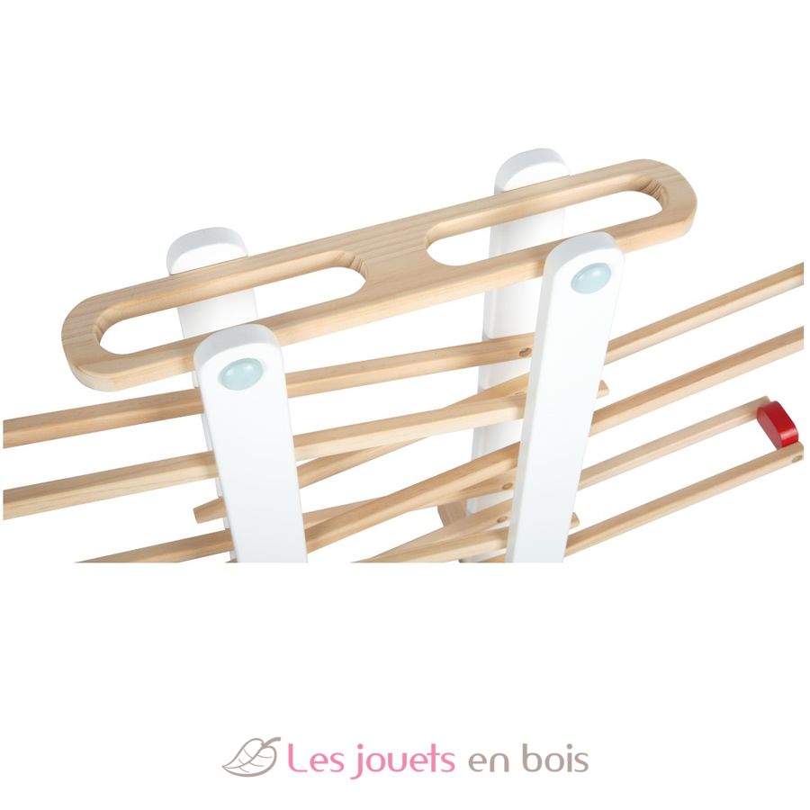 Rasante Kullerbahn-Action im XL-Format! Wenn die 3 Vollholzkugeln die vier Rampen hinuntersausen, ist stundenlanger Spielspaß garantiert.