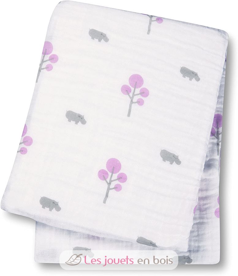 Muslin swaddle mulltuch - rosa hippo, 120 x 120 cm der Marke Lulujo, ref 121-000-011.