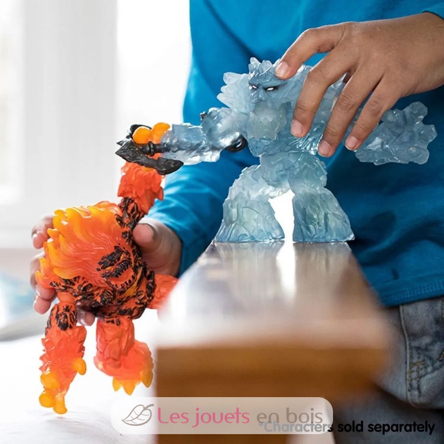Der Lavadämon von Schleich Eldrador Creatures strahlt so intensive Hitze aus, dass sich (fast) niemand ihm nähert. Angreifer wissen, dass alles, was den lodernden Riesen berührt, in Flammen aufgeht. Sein gewaltiger Körper besteht aus geschmolzenem Vulkangestein, und sein Kopf wird von einer glühenden Mähne gekrönt. Trotz seines massiven Aussehens ist der Lavadämon extrem agil und somit ein furchterregender Gegner: Da er seinen gesamten Oberkörper drehen kann, entgeht ihm keine Bewegung. Jeder, der sich nähert, wird sofort erkannt. Dank seiner beweglichen Arme packt er seine Feinde blitzschnell und schüttelt sie heftig. Der Lavadämon kann auch sein Maul bewegen: Sobald er es öffnet, brechen Flammen und ein sengender Atem hervor, der nicht nur nach verbranntem Gestein riecht, sondern auch unerträglich heiß ist!