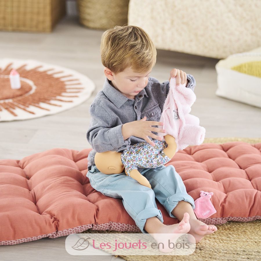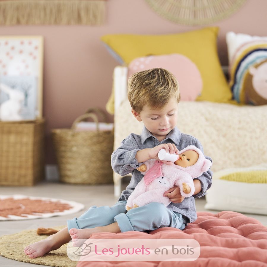 Diese Puppe wird mit zwei Zubehörteilen geliefert: sein Stofftier und seine Flasche. Diese Puppe ist ideal für Kinder ab 18 Monaten.