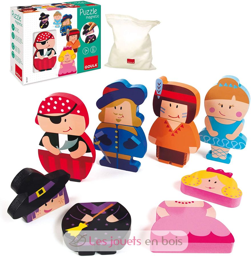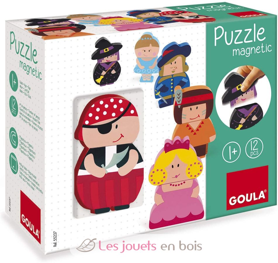 Diese einfache Puzzle hilft motorischen Fähigkeiten, Beweglichkeit zu entwickeln. Ihr Kind wird lernen, zu geben und Teile und somit beinhalten verschiedene Charaktere befassen sich mit zwei Teilen (Piraten, Indianer, Musketier, Prinzessin). Diese Zeichen Puzzles, Holz-, Magnet sind ein ideales Spielzeug. Ein Holzspielzeug Marke von Goula.