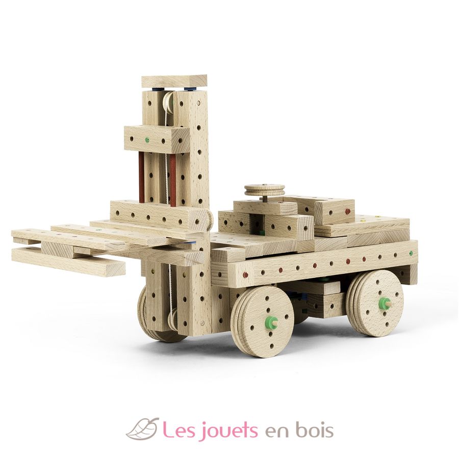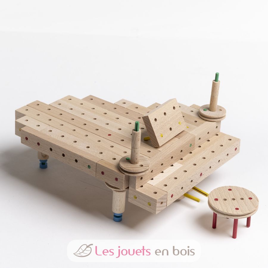 Dieses Konstruktionsset für Kinder ab 5 Jahren wird mit Werkzeugen geliefert, die an die kleinen Hände von Kindern angepasst sind (Hammer und Zange), um ihre Konstruktionen bis ins Unendliche zu montieren und zu demontieren. Detaillierte Anweisungen ermöglichen es ihnen, die vorgeschlagenen Modelle zu erstellen. Kinder können aber auch ihre eigenen Kreationen machen!