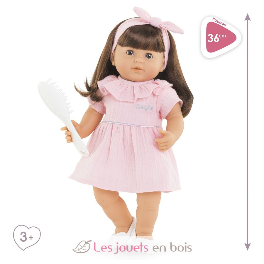 Julie ist eine 36 cm große Puppe. Mit ihrem langen Haar und der mitgelieferten Bürste kann Ihr Kind Spaß daran haben, die Haare seiner Puppe zu stylen.
