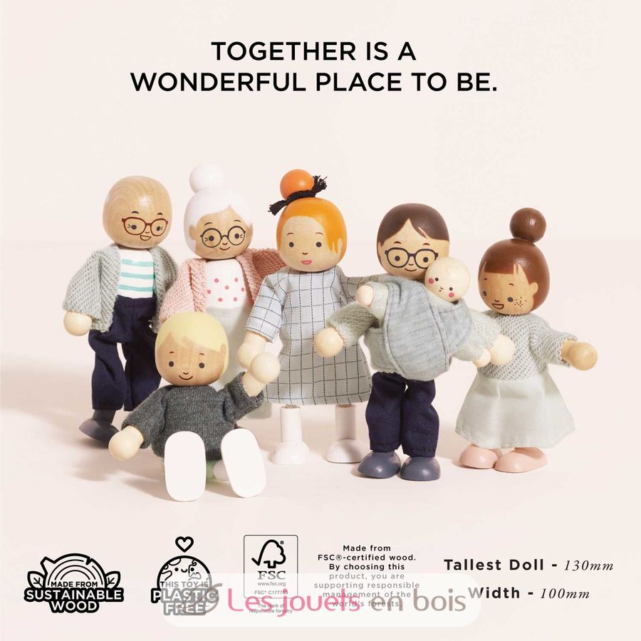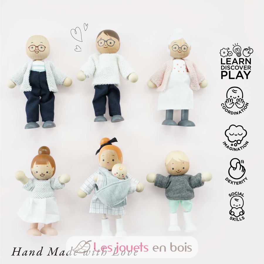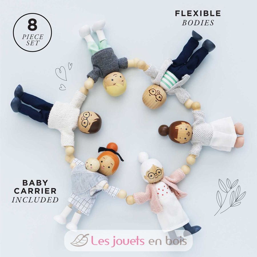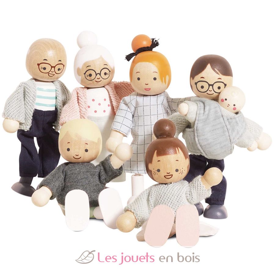 Das Set besteht aus sieben detailreichen, Puppenhausfiguren: Eltern, Großeltern, Kinder und Baby inklusive Babytrage.