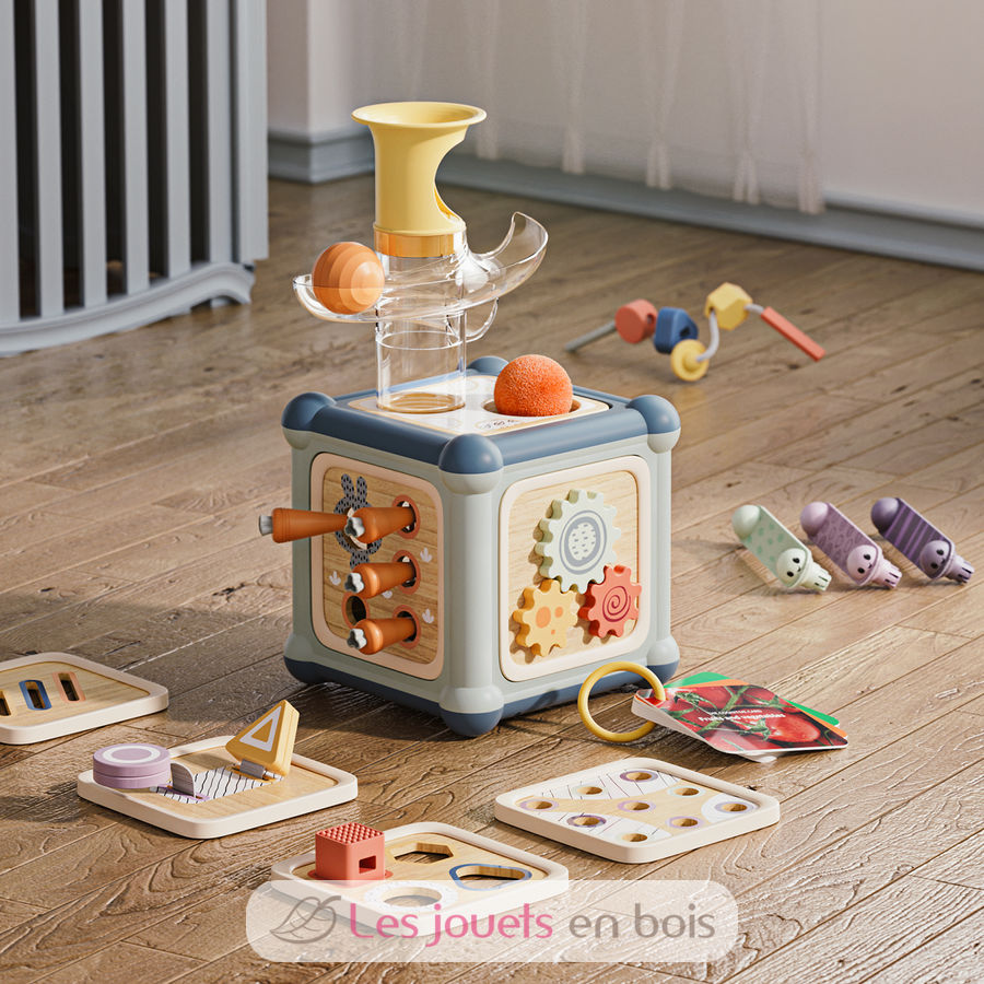 Was trainieren wir heute? Der Multifunktions-Motorikwürfel vereint 10 verschiedene Spielmöglichkeiten zur spielerischen Förderung der Feinmotorik und Konzentrationsfähigkeit.