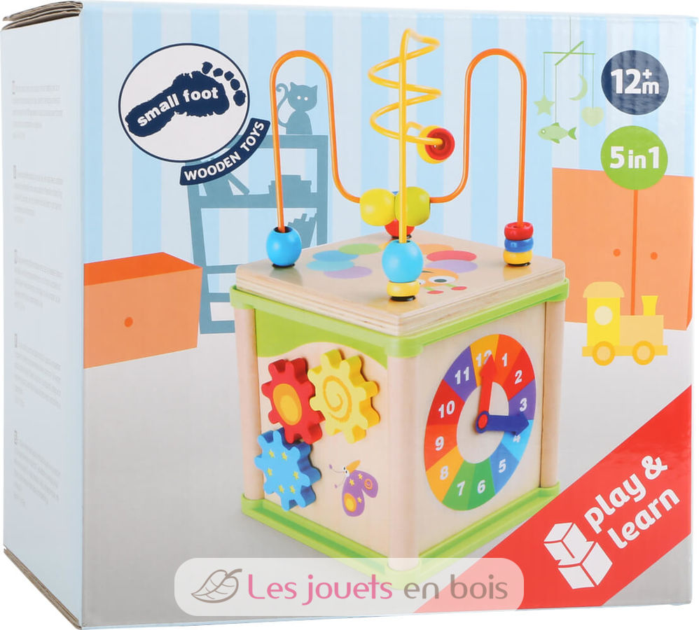Wenn nicht viel Platz im Kinderzimmer ist und die Spielflächen begrenzt sind, dann kommt dieser funktionale Motorikwürfel zum Einsatz. Mit einer Motorikschleife zum Abnehmen, Zahnrädern, einer Uhr und einem Steckspiel, fördert er ganz spielerisch die Feinmotorik und Konzentration.