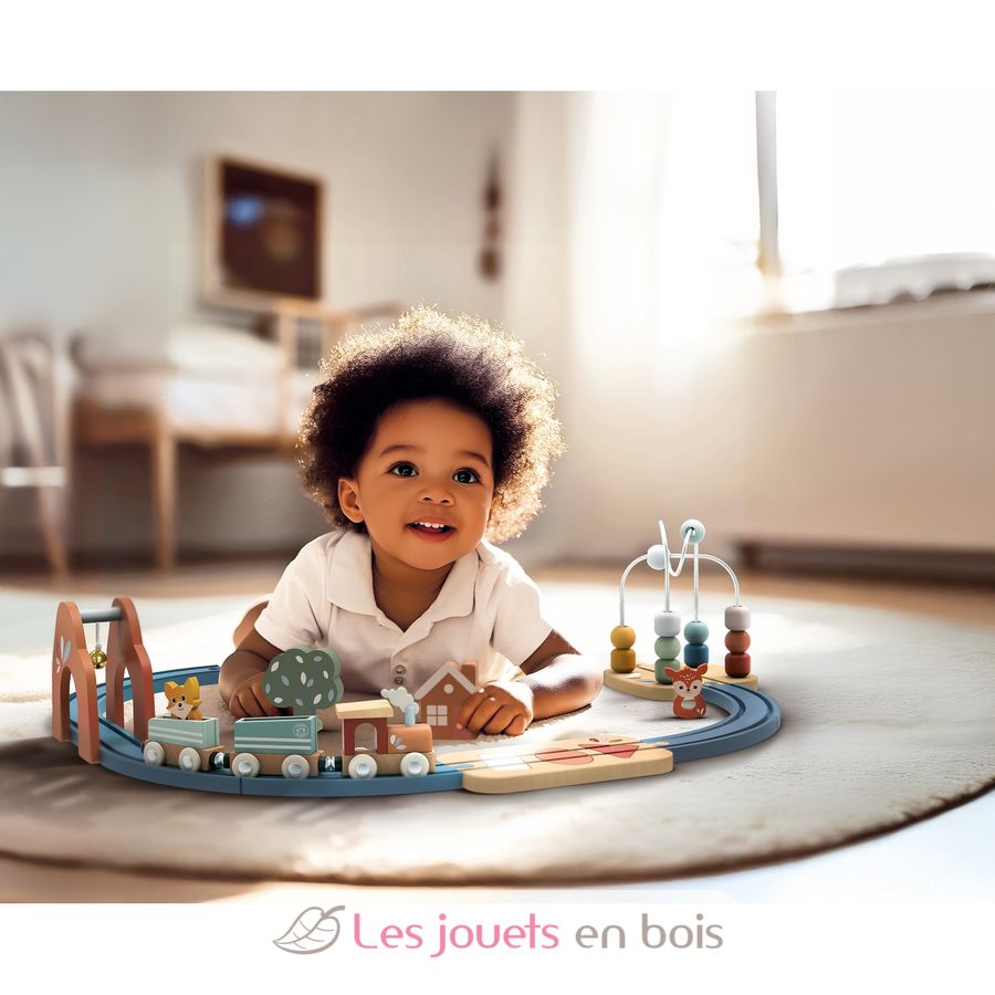 Von kurvigen Schienen und einer Xylophonbrücke bis hin zum Tunnel mit Glocke, Formensortierern und Schiebeperlen – jedes Element lädt Ihr Kind zum aktiven Spielen, Bauen und Problemlösen ein. Mit seinen bunten Komponenten und liebevollen Details fördert dieses Set die visuelle Entwicklung und hält die Fantasie junger Köpfe lebendig.