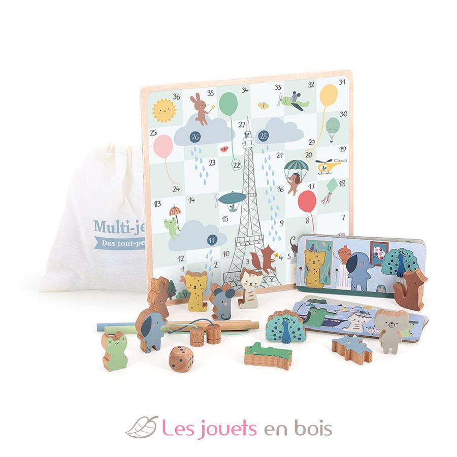Die niedlichen Holztiere in diesem Holz-Multi-Spieleset, illustriert von Sarah Betz, werden Ihr Kind ab 2 Jahren begeistern!
