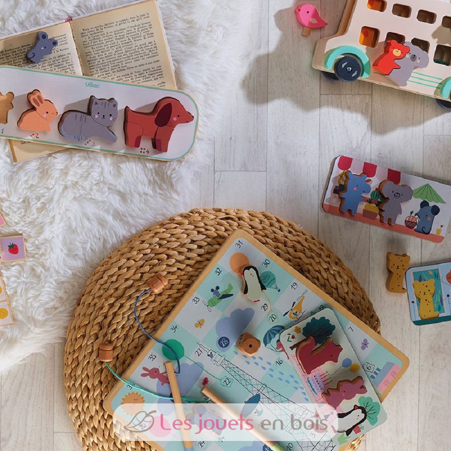 Die niedlichen kleinen Figuren können in den vier Spielen dieses Sets verwendet werden: Leiterspiel, Angelspiel, Gänsespiel und Bingo.