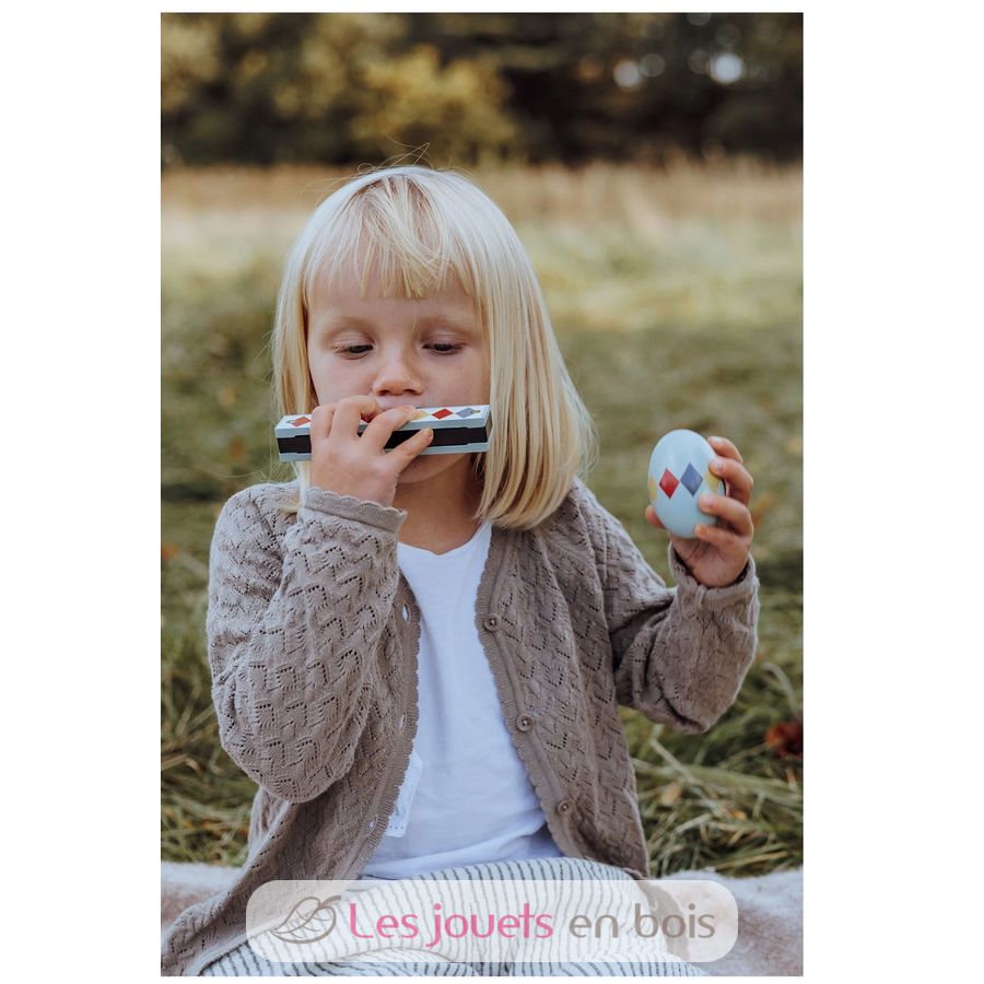 Diese Mundharmonika aus Holz ist das perfekte Instrument, um Kinder an die Musik heranzuführen und ihnen beizubringen, ihre Atmung zu kontrollieren, um verschiedene Töne zu erzeugen.