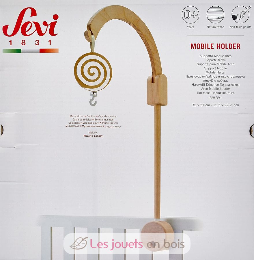 Hübsche Musik-Mobile Halterung Natur. Länge : 60 cm. Das Wiegenlied von Mozart und die Bewegungen des Mobiles werden Ihr Kind in süßen Nächten tauchen. Ein Holzspielzeug hergestellt bei der Firma SEVI.