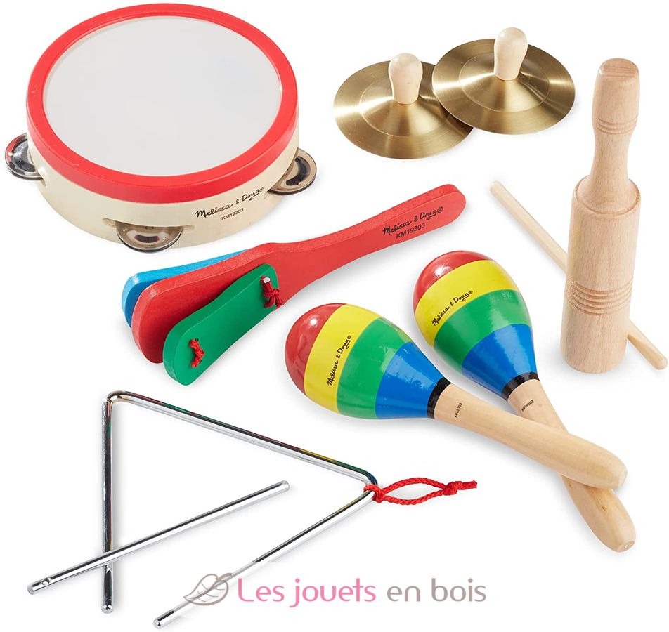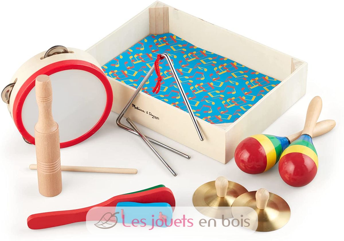 Dieses Set aus 6 Schlaginstrumenten (in 10 Teilen) führt Kinder auf spielerische Weise an die Musik heran, indem es ihr Rhythmusgefühl trainiert und ihre Feinmotorik stärkt.
