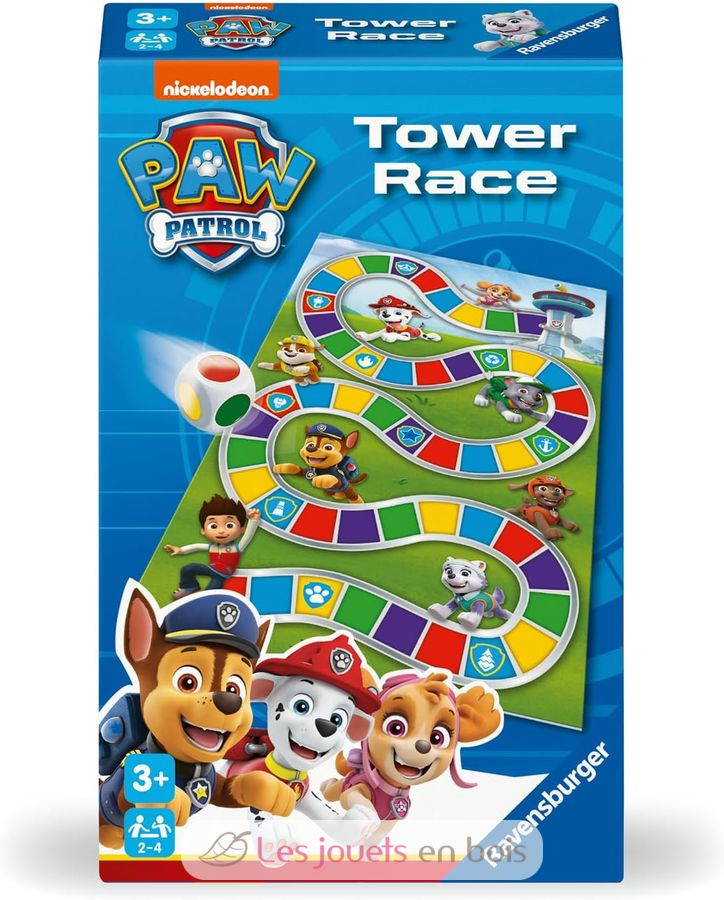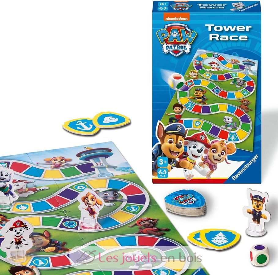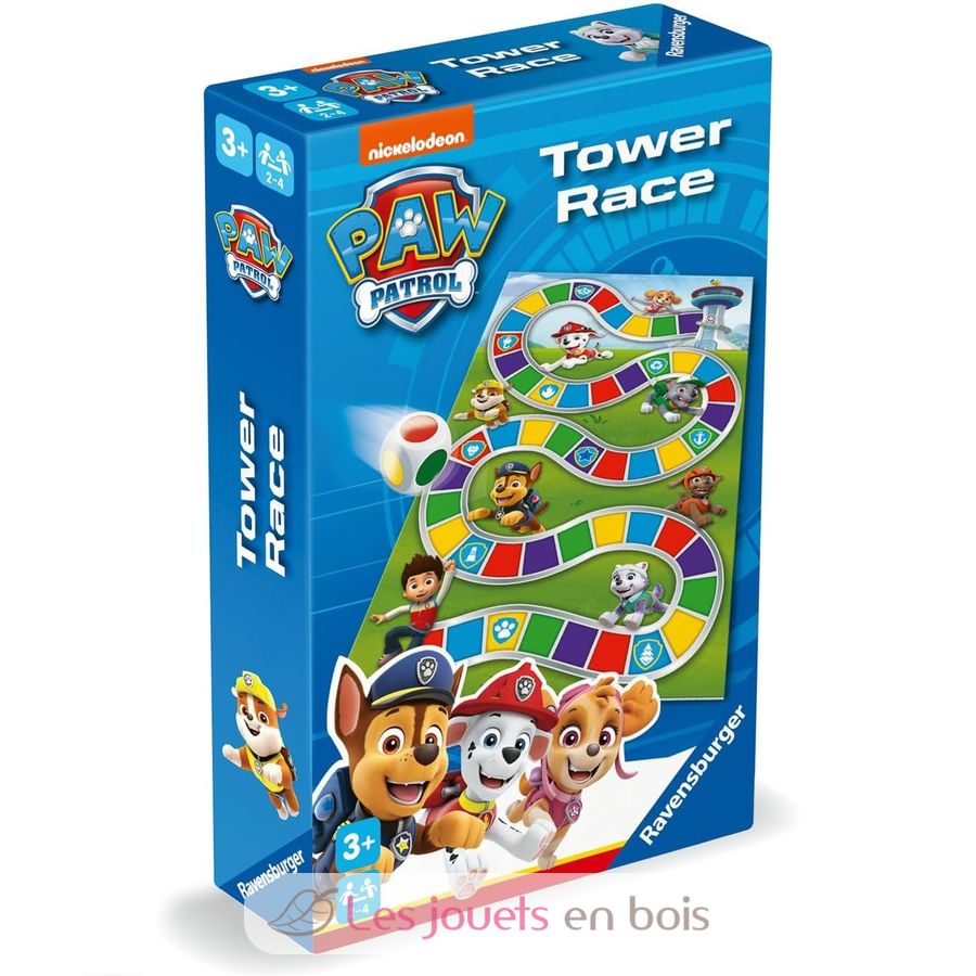 Das Ziel des Spiels ist es, mit Ihrem Lieblingshund vor den anderen Spielern das Hauptquartier zu erreichen. Wenn Sie an der Reihe sind, würfeln Sie und bewegen Ihre Figur dann auf das nächste Feld der durch den Würfel angezeigten Farbe. Die Regeln sind einfach und leicht verständlich, was es zum perfekten Brettspiel für die Zeit mit der Familie macht. Nach einigen Spielen sind Kinder sogar in der Lage, ohne Hilfe von Erwachsenen untereinander zu spielen. Dank seiner geringen Größe können Sie Paw Patrol Tower Race in eine kleine Tasche stecken und überallhin mitnehmen, auch auf Reisen. Sind alle bereit? Das Rennen kann also beginnen!