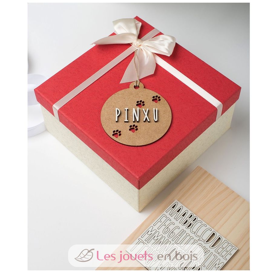 Das Set enthält: 1 Weihnachtsschmuck aus Holz mit Aufhängeschnur und 1 Bogen selbstklebende Holzbuchstaben. Maße: 9 cm.