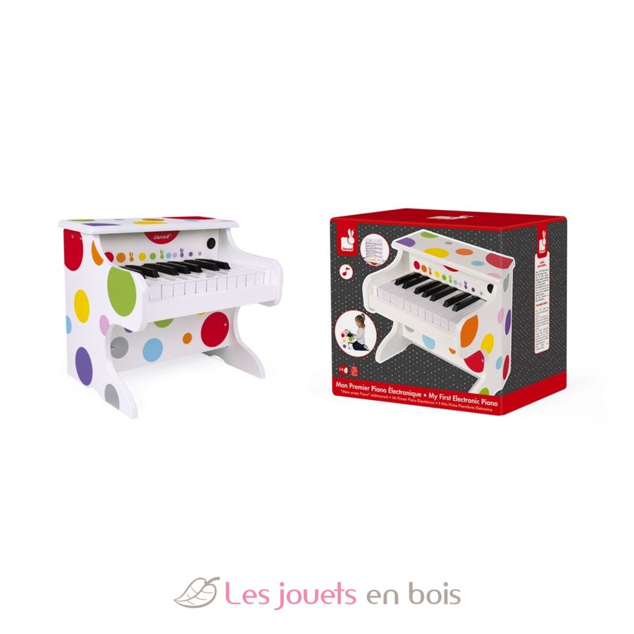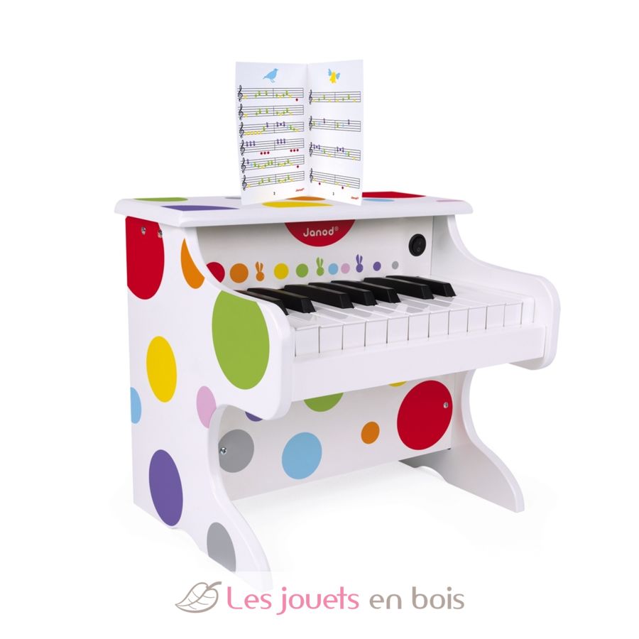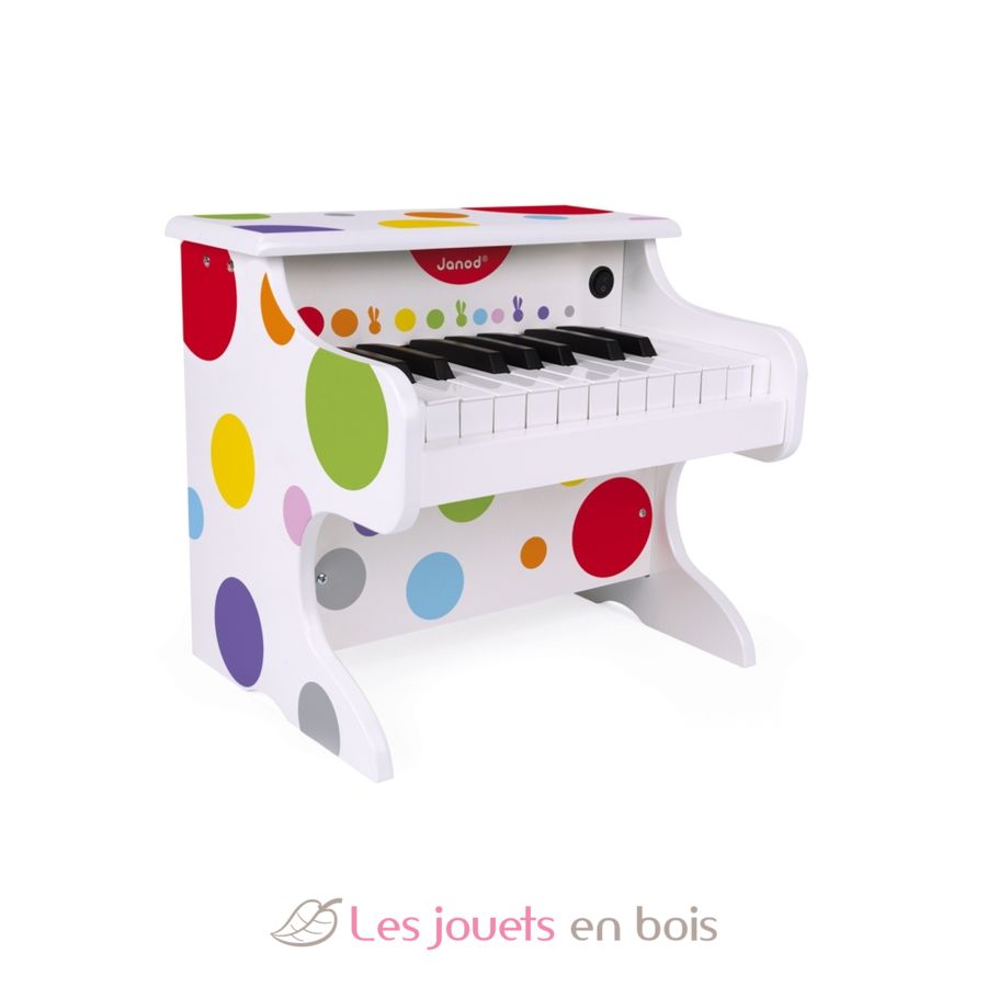 Piano aus Holz. Elektrisch mit Batterien. Geeignet für Kinder von 3 bis 8 Jahren. Dieses attraktive, farbenfrohe 18-Tasten Mini-Playback wird die Kinder begeistern und ihnen die Freude am Klavierspiel näher bringen. Es ist stabil und seine Größe ist ideal für jüngere Spieler geeignet. Enthält vier Partituren, damit Ihr Kind wie ein wahres Wunderkind Klavier spielen kann (französische Lieder: Alouette, Au clair de la lune, Frère Jacques und ein englisches Lied: Twinkle twinkle little star). Das Piano schaltet sich automatisch in den Standby-Modus, nachdem Ihr Kind das letzte Mal 2 Minuten gespielt hat. Benötigt vier 1,5 V Batterien (nicht im Lieferumfang enthalten). Rot, gelb, grün, orange … Konfetti, eine umfangreiche Musik-Kollektion mit Pop N ‚Rock Designs! Konfetti erweckt alle Sinne und führt die jüngsten Musiker in die Freuden der musikalischen Improvisation ein.