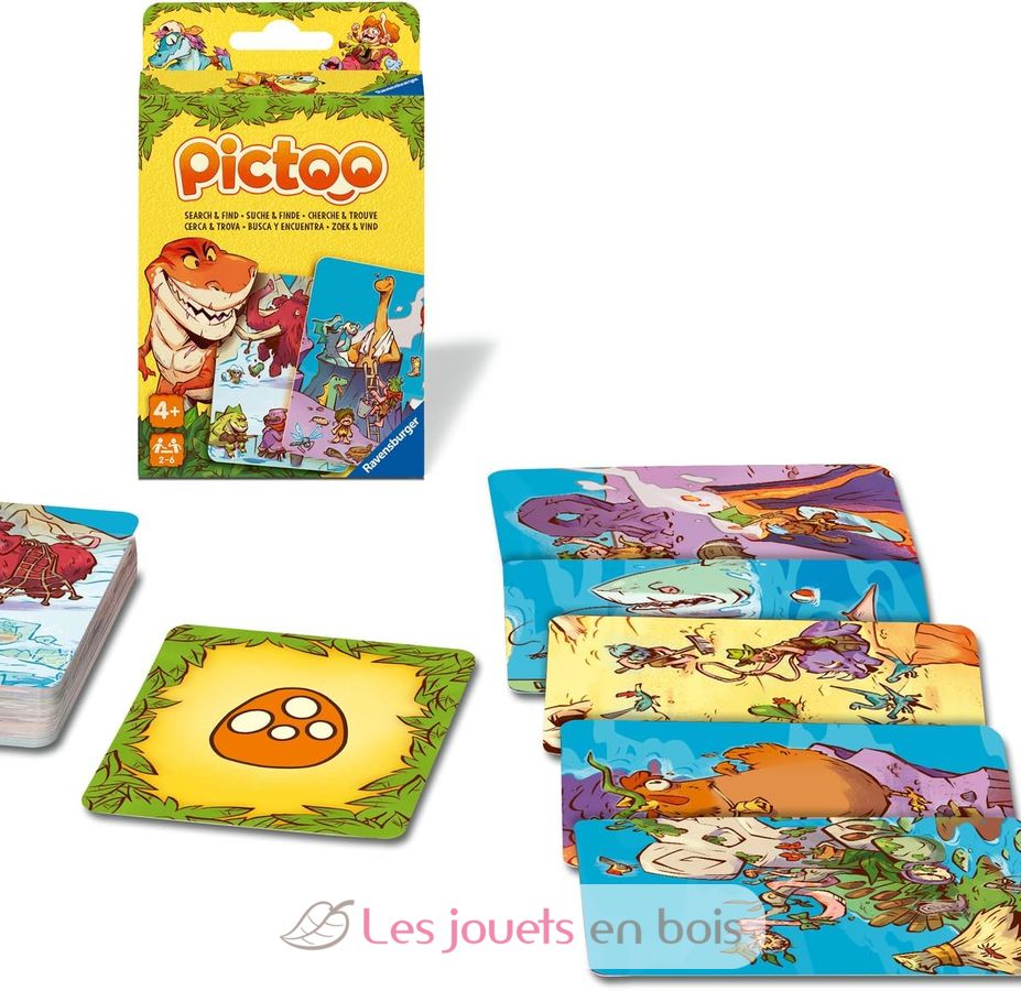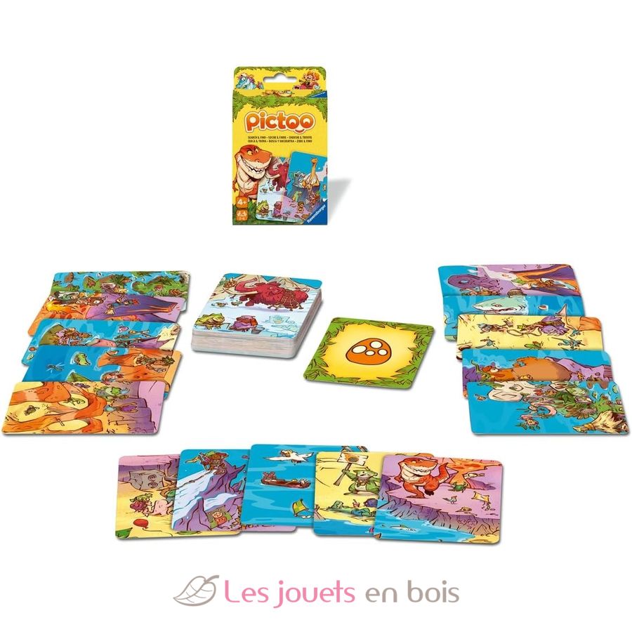 Reisen Sie mit Pictoo zurück in die Zeit der großen Dinosaurier! Finden Sie am schnellsten den gewünschten Gegenstand auf einer Ihrer Karten, um auf den Sieg zu hoffen. Mit Pictoo können Kinder ab 4 Jahren spielerisch ihre Beobachtungs- und Assoziationsfähigkeiten entwickeln. Das Such- und Findespiel eignet sich hervorragend, um kleine Kinder sanft an Brettspiele heranzuführen. Es dauert nur wenige Sekunden, sich mit allen Regeln vertraut zu machen.