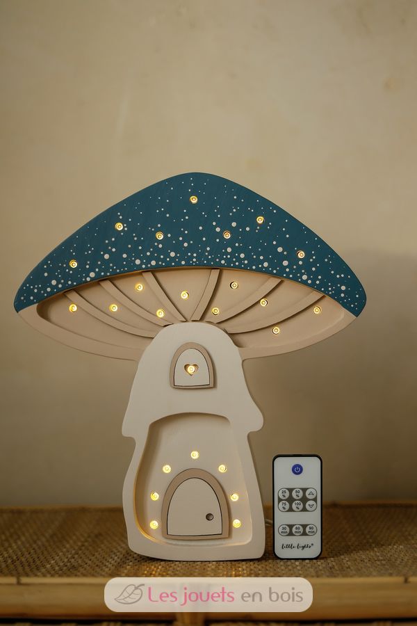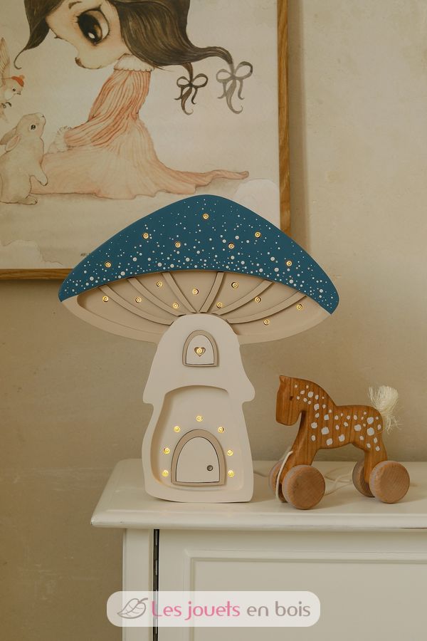 Nachtlicht aus Holz für Kinder in Form einer Pilz.