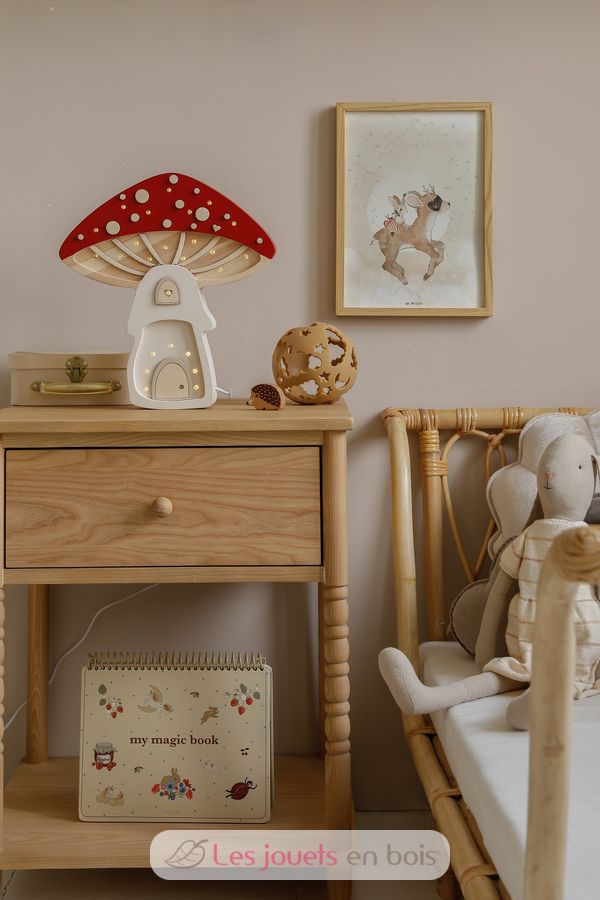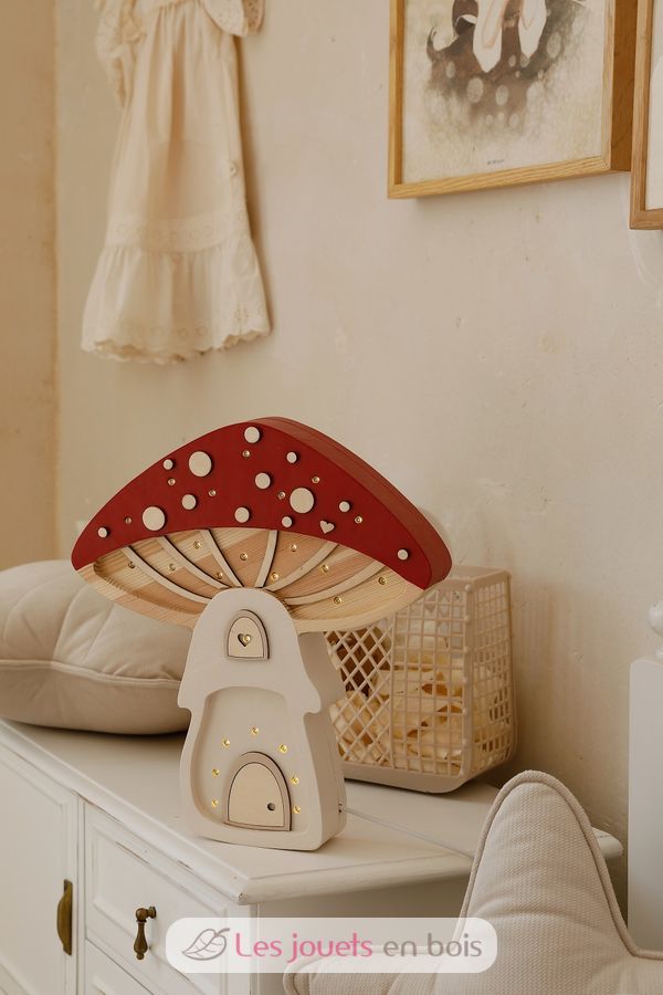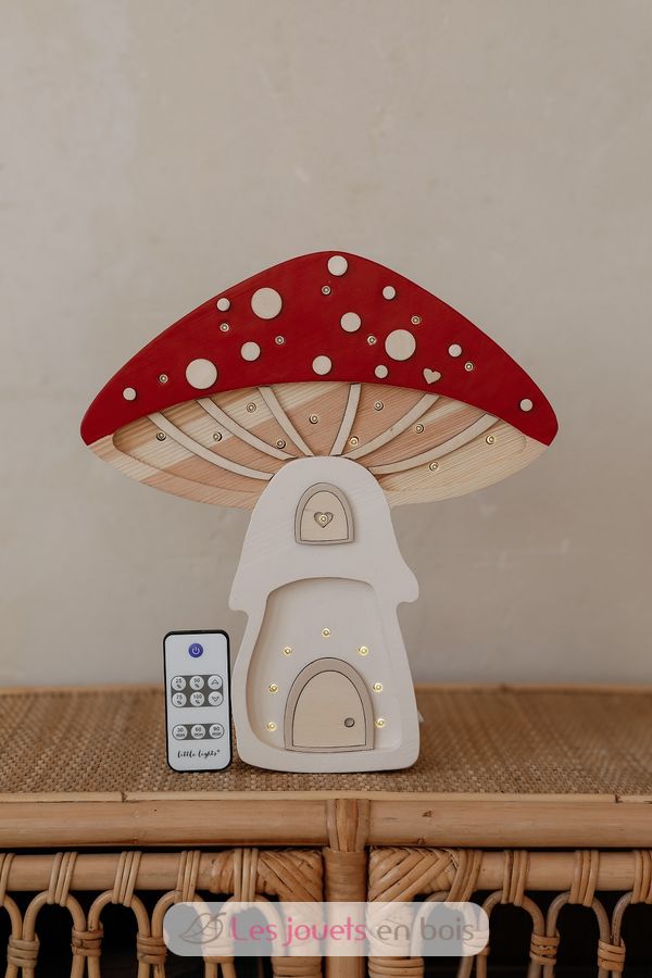 Nachtlicht aus Holz für Kinder in Form einer Pilz.